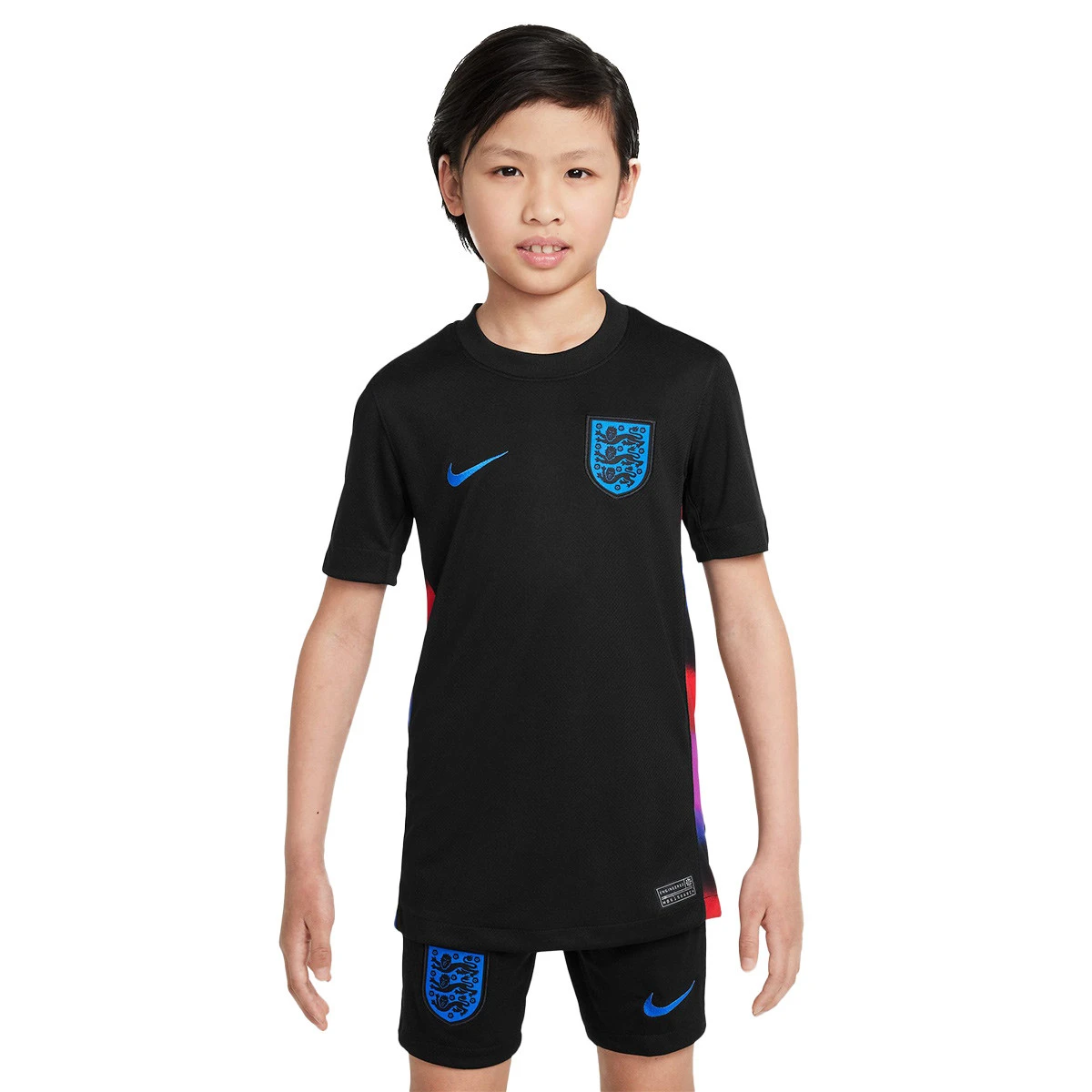 Le maillot extérieur de l'équipe d'Angleterre 2025 montre l'exemple lorsqu'il s'agit de défier les stéréotypes et de réinventer les chemins de la grandeur. Il rend hommage à l'impact de l'équipe sur les futures générations d'athlètes féminines grâce à des touches de couleur audacieuses qui tranchent avec le noir.