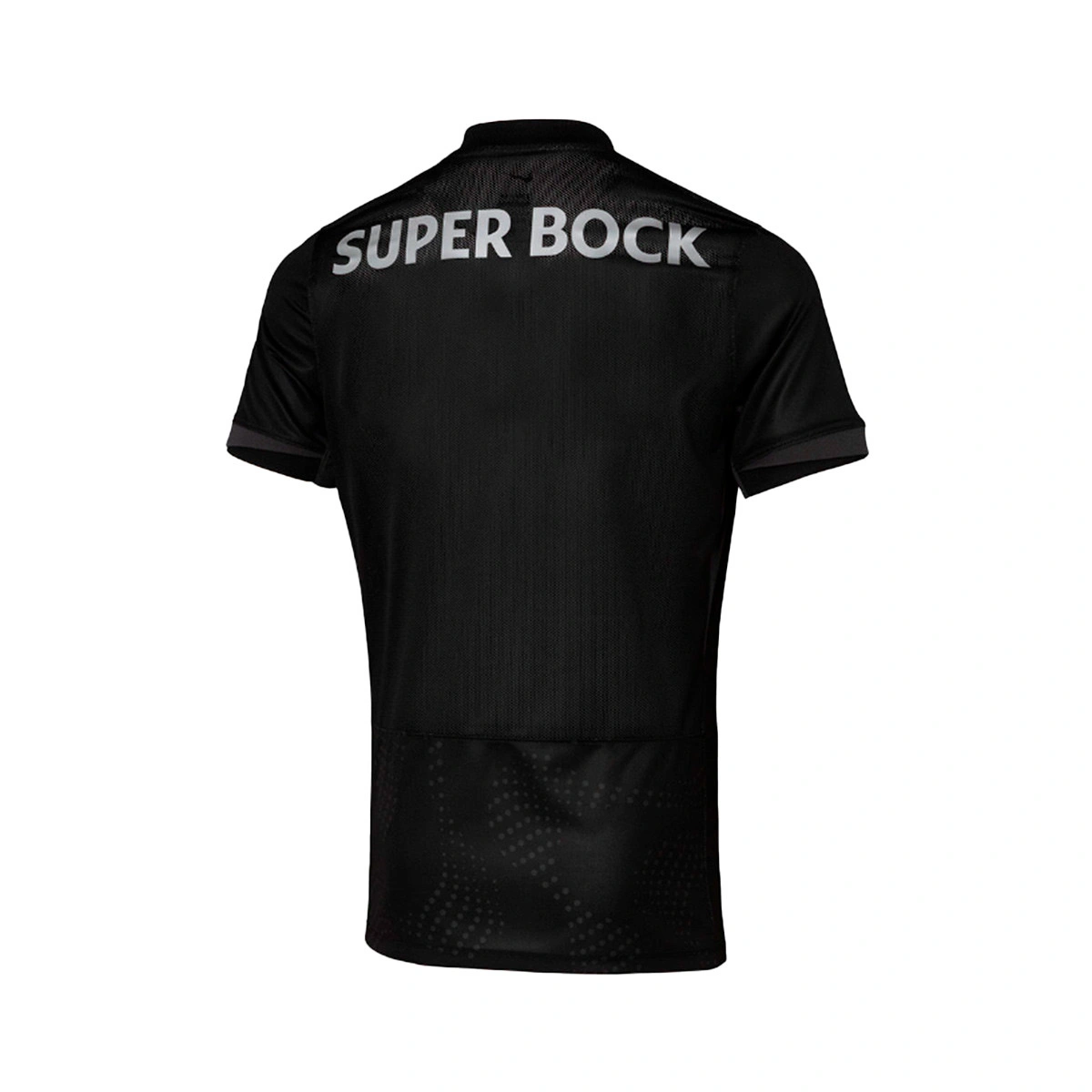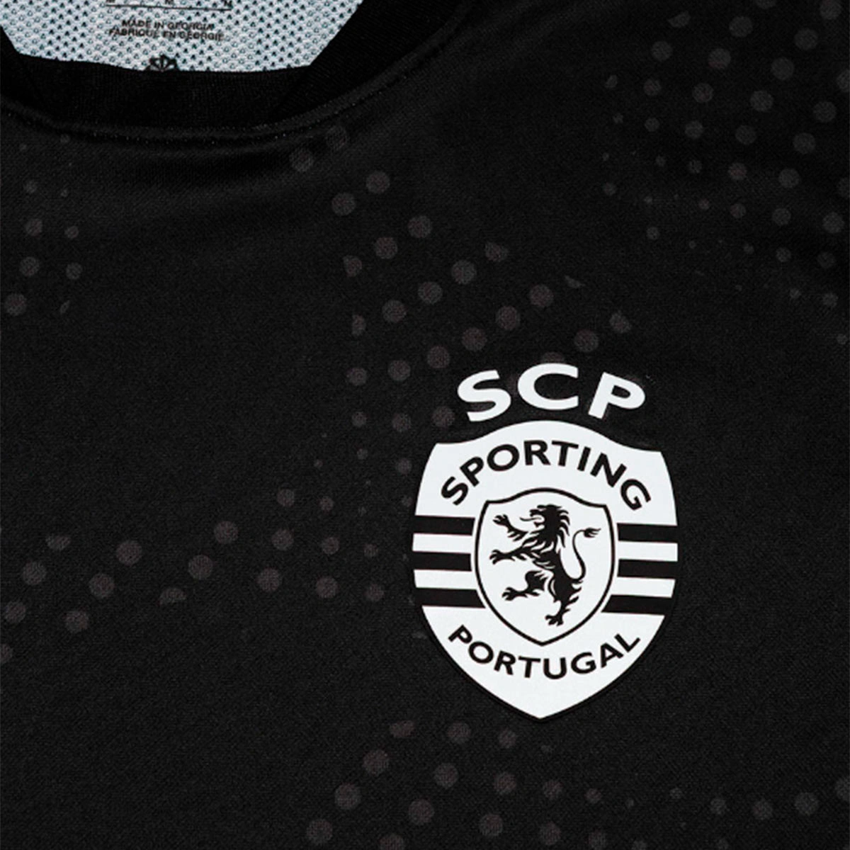 Avec des détails qui capturent le style élégant du Sporting, ce vêtement est rehaussé d'un ton noir distinctif, parfait pour ceux qui souhaitent soutenir le club avec un look sophistiqué.