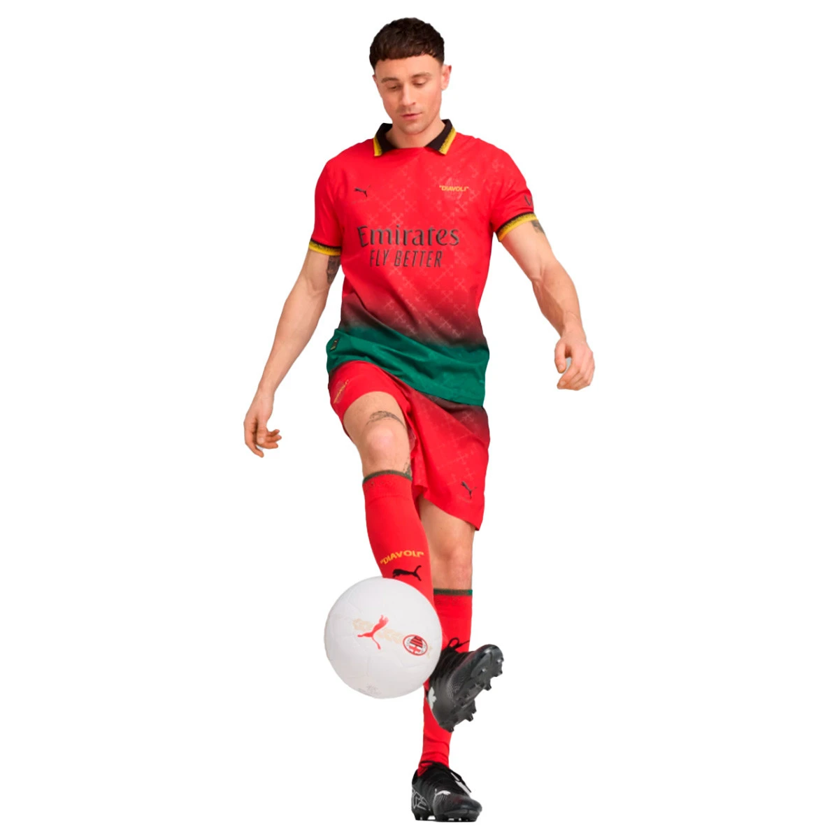Imaginez que vous portiez un vêtement qui ne représente pas seulement votre équipe préférée, mais qui est aussi un bijou de design moderne. Le maillot Puma AC Milan Fourth Kit x Off-White 2024-2025 est idéal pour les fans passionnés qui souhaitent s'associer à leur équipe d'une manière unique. Ce vêtement se distingue non seulement par son lien avec le légendaire A.C. Milan, mais aussi par ses détails inégalés qui mélangent l'ADN du club avec des touches contemporaines et élégantes.