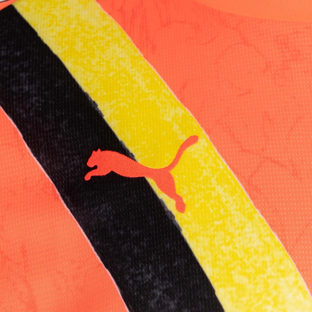 Préparez-vous à briller aussi bien sur le terrain qu’en dehors avec le maillot Manchester City Édition Spéciale Coupe du Monde des Clubs 2025 de Puma. Ce vêtement ne se contente pas de montrer votre soutien au célèbre club anglais, il allie sport et mode grâce à son design audacieux et contemporain. L’association de couleurs vibrantes, où le néon rencontre le noir, apporte une touche de modernité qui ne passera pas inaperçue.