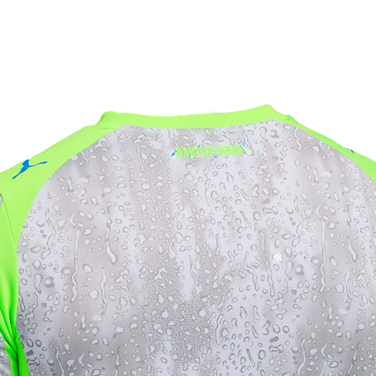 Avec l’écusson du Manchester City et les logos PUMA Cat sur l’avant et les manches, il représente fièrement l’esprit intrépide du club. Il se distingue par son design exclusif façon pluie et l’inscription « Rain or Shine » au dos. Manchester City est le symbole du peuple, de la culture et de l’humour de Manchester.