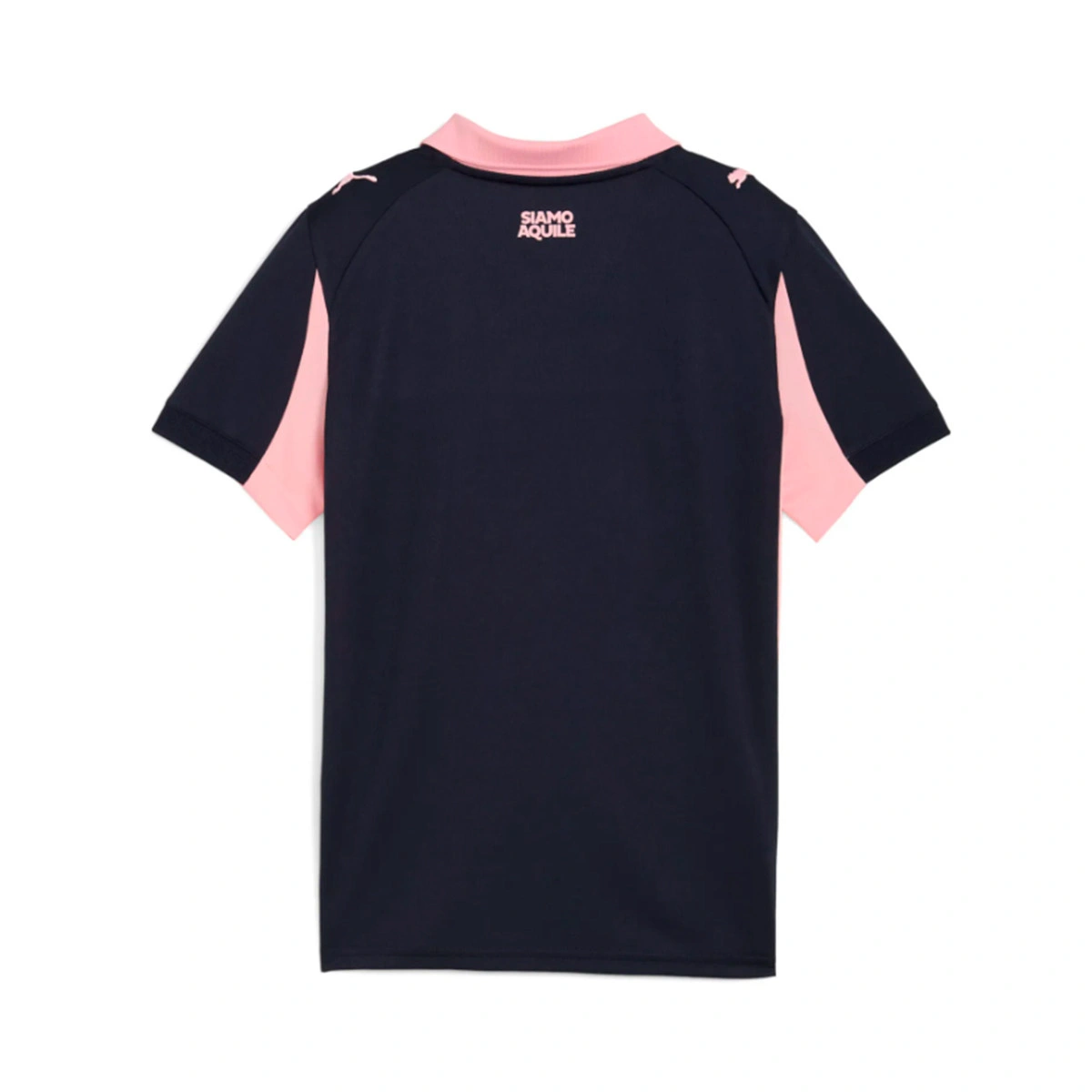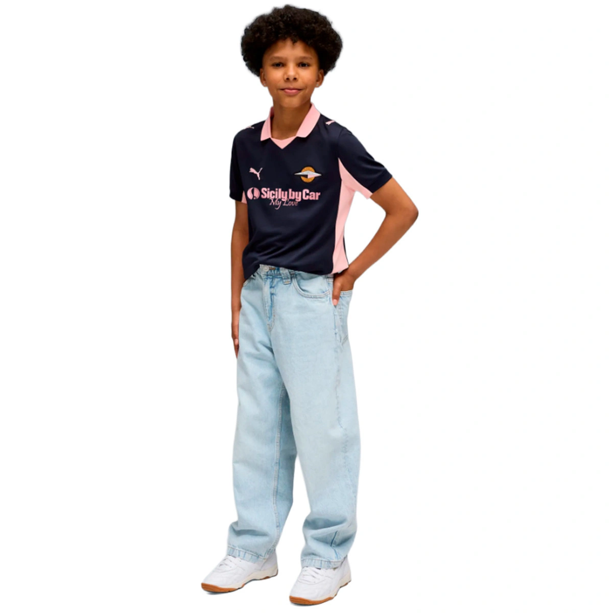 Habille-toi comme un vrai fan avec le maillot Palermo Deuxième Équipement 2025-2026 de Puma ! Conçu pour les plus petits, ce vêtement capture l’essence de l’US Palermo avec ses couleurs distinctives : un bleu marine profond combiné à un subtil rose clair qui apporte une touche d’élégance sur le terrain.