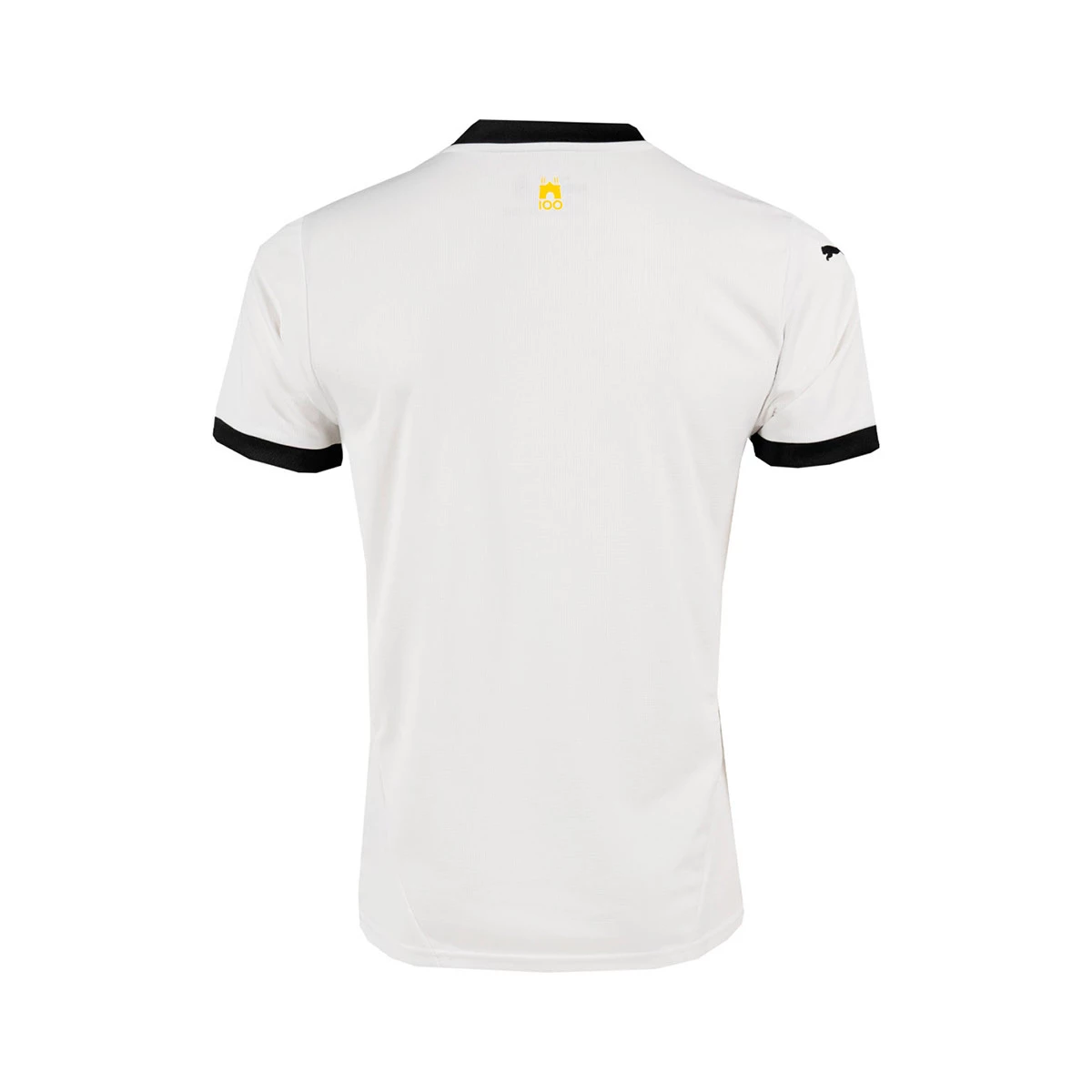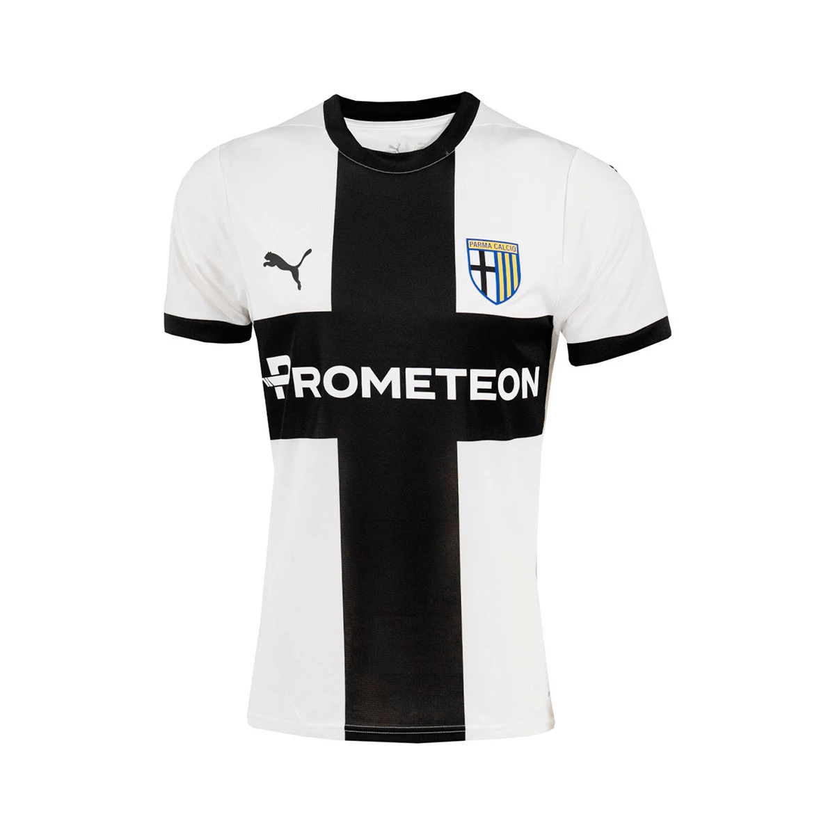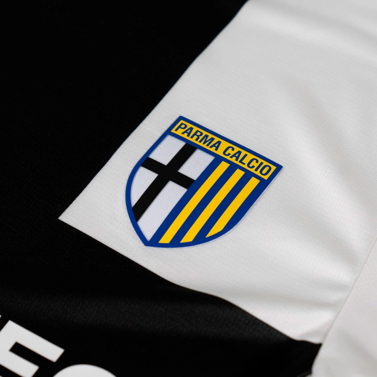 Le maillot domicile du Parma 2024-2025 présente la croix contrastée emblématique, un col rond et des profils de manches contrastés en noir Puma. Au dos, il est orné du logo Tardini 100 qui célèbre le lien historique entre l'équipe et son stade à l'occasion de l'année du centenaire.