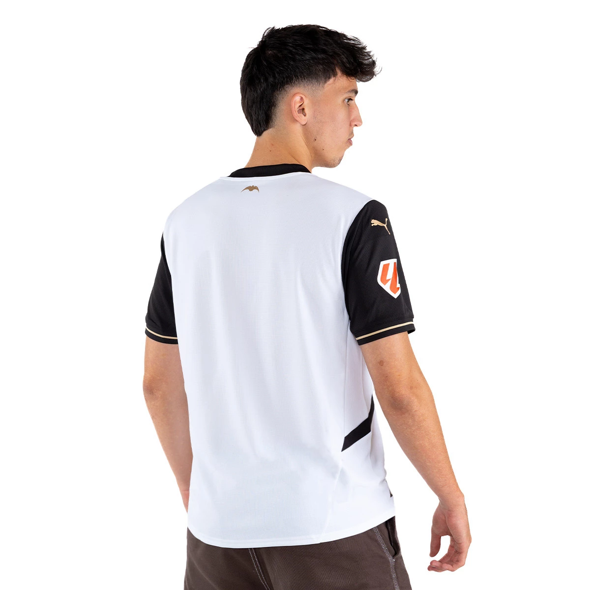 Maillot domicile du Valencia CF 2024-2025. Montrez votre soutien à l'équipe en arborant l'écusson sur le côté gauche. Le col et les manches sont ornés de détails noirs.