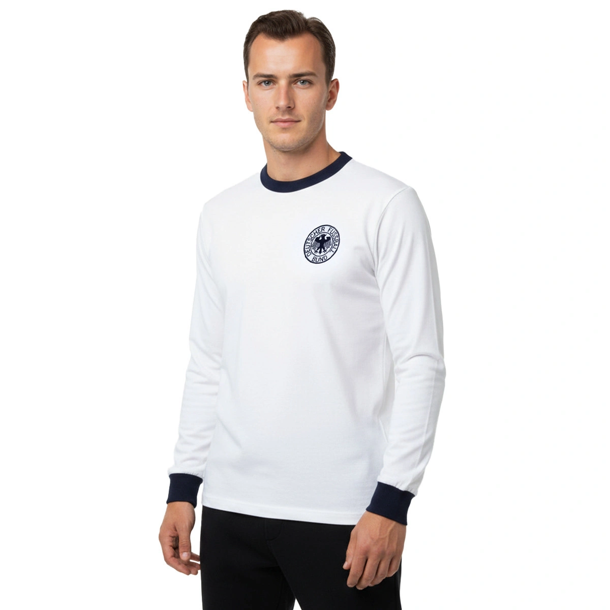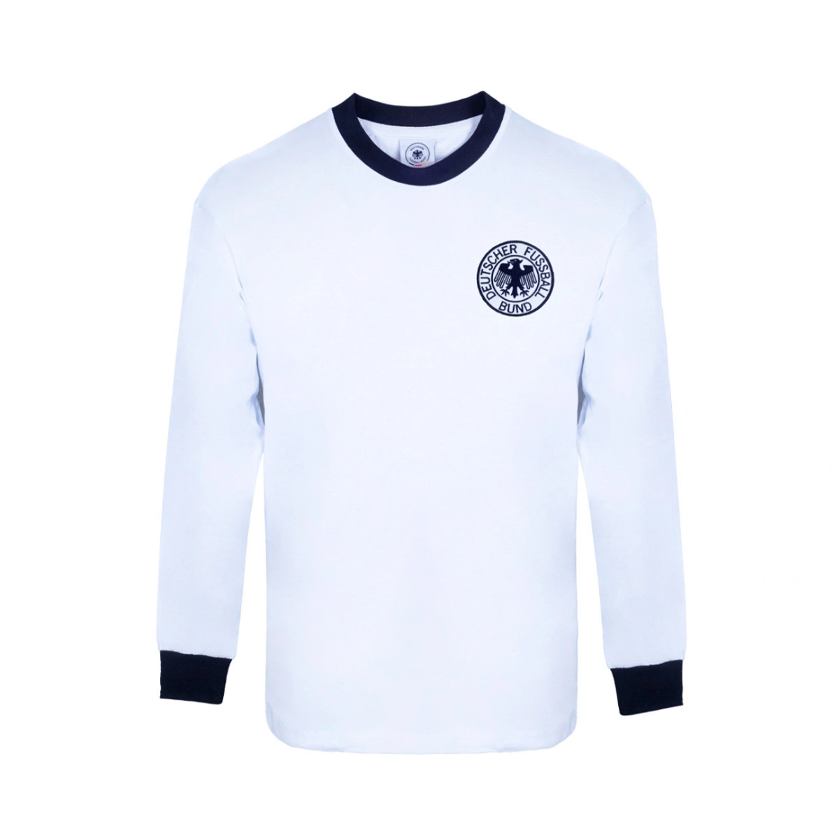 Revivez les jours de gloire du football avec ce maillot emblématique de l'Allemagne de l'Ouest pour la finale de la Coupe du Monde de 1974.