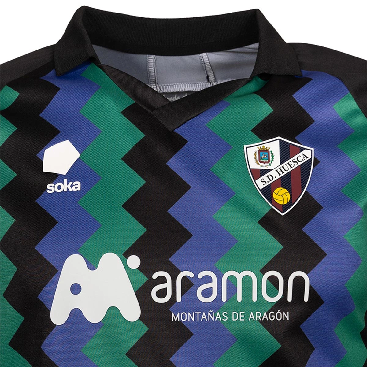 Maillot de gardien de but de la première tenue de la SD Huesca pour la saison 2025-2026, de la marque Soka, pour enfant. Porte fièrement le maillot que revêtent les gardiens lorsqu’ils représentent l’équipe oscense et ressens l’importance de ce rôle au sein de l’équipe.