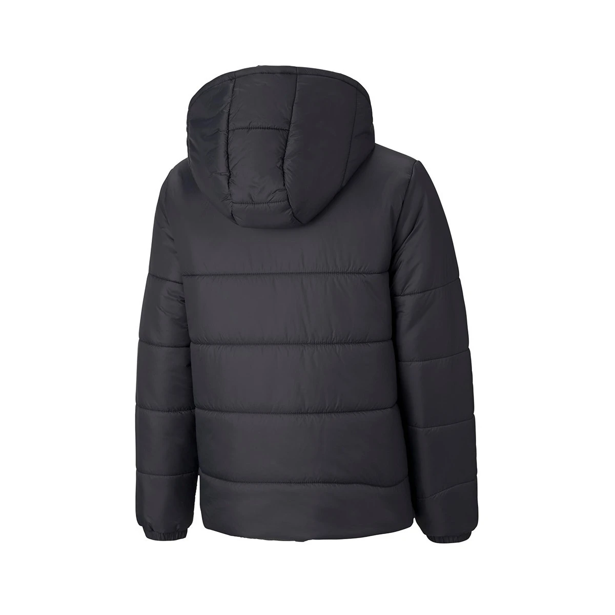 Veste de la ligne TeamLIGA de Puma. Ce vêtement présente un design matelassé, une capuche et des poches zippées sur les côtés.