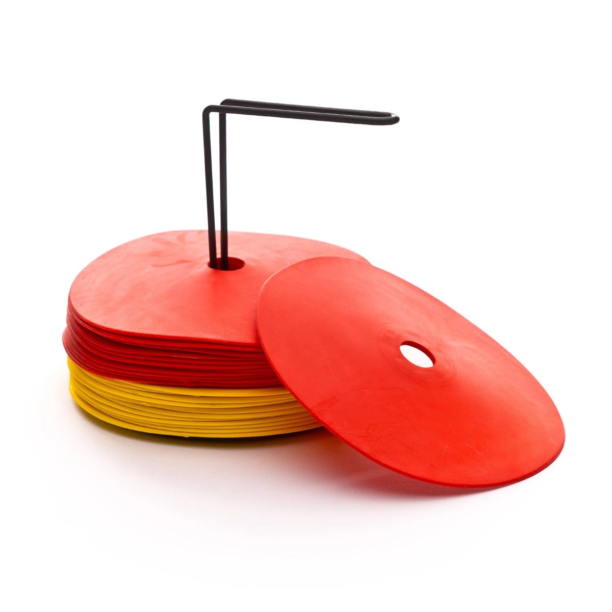 Les traditionnels semi-cônes ont laissé place aux disques de marcage. Ils remplissent le même rôle de marquer les espaces tout en évitant d'interférer les actions de jeu et de provoquer des lésions au joueur. Caractéristiques techniques:
