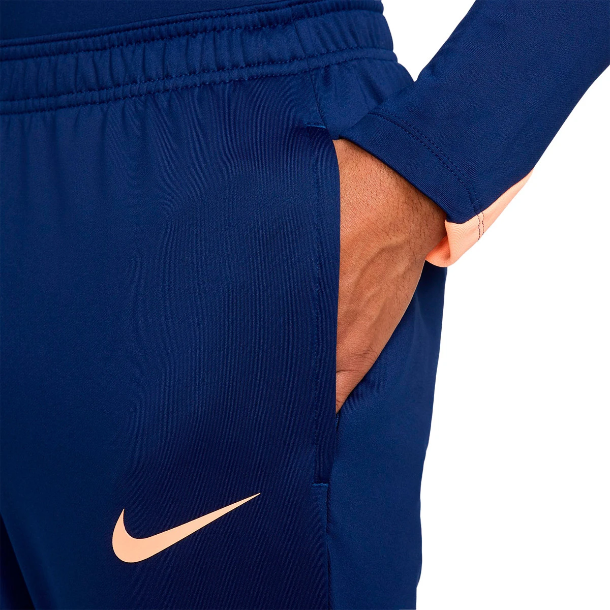 Libère le meilleur de toi-même avec la collection de vêtements Nike Strike à gestion de l'humidité. Cette ligne est idéale aussi bien pour les footballeurs de haut niveau que pour les étoiles montantes du terrain. Ce pantalon ajusté est léger et respirant pour maintenir la fraîcheur sur le terrain. Déplace-toi sans effort d'un côté à l'autre grâce à un panneau de renfort qui offre plus de liberté de mouvement à chaque foulée. De plus, une fois ton entraînement terminé, les bas avec fermeture éclair te permettront de te changer sans enlever tes baskets ou tes chaussures de football.