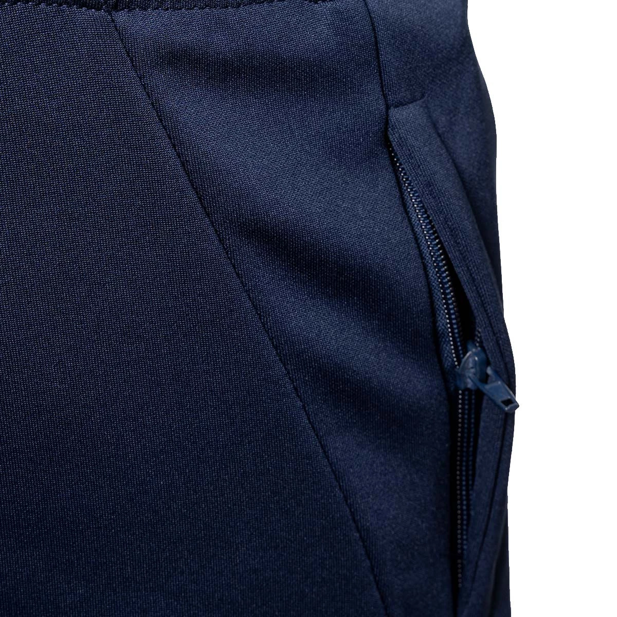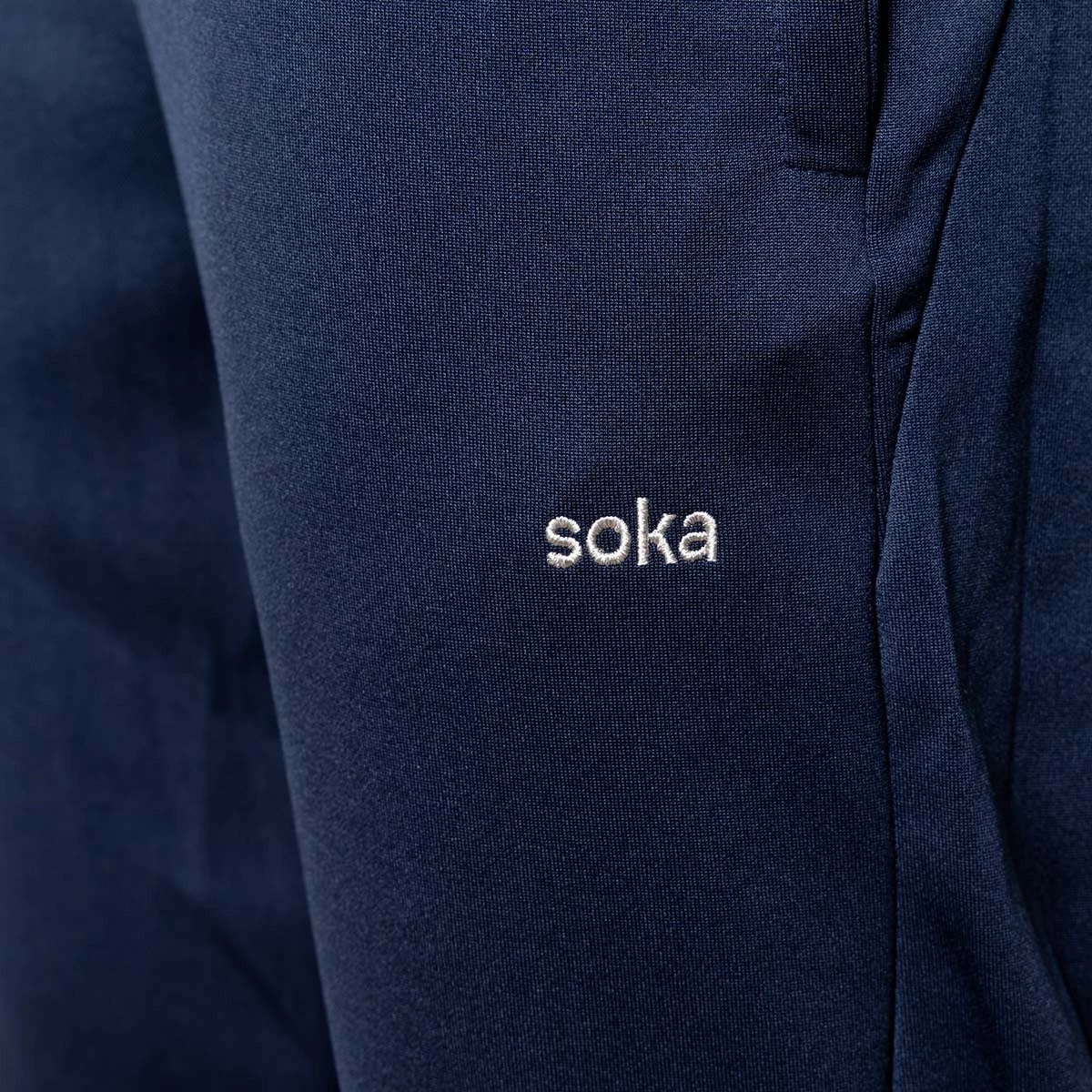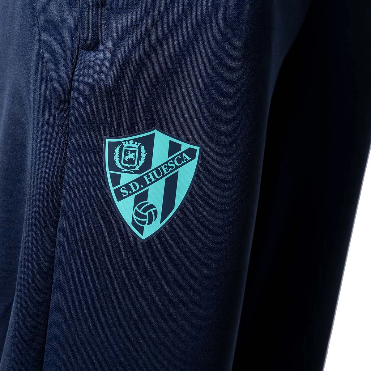 Pantalon long SD Huesca 2024-2025 de Soka en bleu-marine. Le vêtement idéal pour suivre l'équipe lors de vos déplacements sportifs, de vos entraînements et lorsque vous allez la soutenir. Poches latérales, poignets élastiques et ceinture caoutchoutée avec cordon réglable.