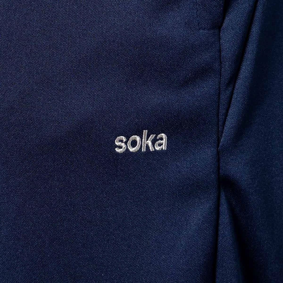 Pantalon long SD Huesca 2024-2025 de Soka en bleu-marine. Le vêtement idéal pour suivre l'équipe lors de vos déplacements sportifs, de vos entraînements et lorsque vous allez la soutenir. Poches latérales, poignets élastiques et ceinture caoutchoutée avec cordon réglable.