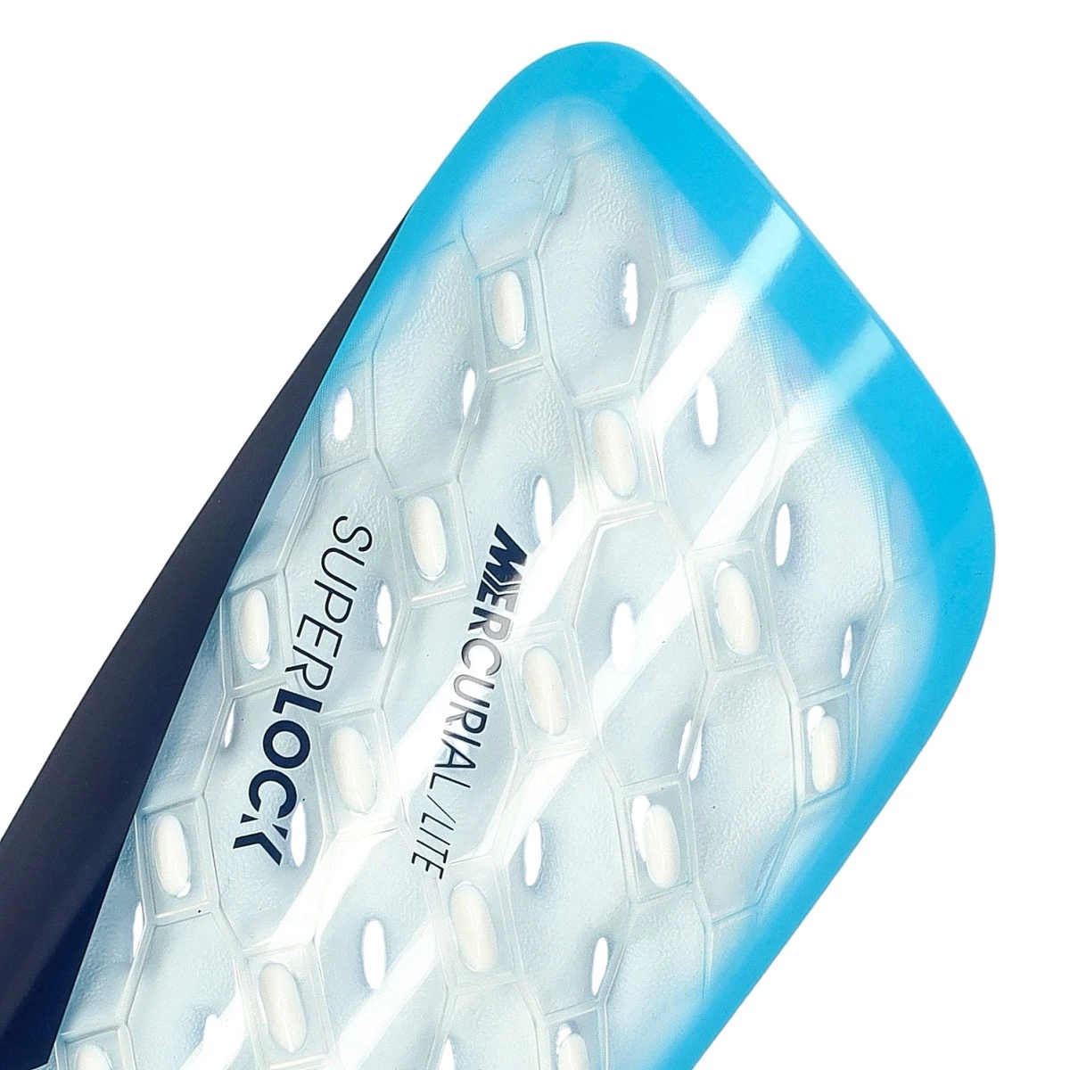 Les protège-tibias Nike Mercurial Lite SuperLock sont dotés d'une doublure en mousse moulée pour un ajustement personnalisé, et les superpositions SuperLock sont insérées dans les fibres de la chaussette pour un ajustement sûr.