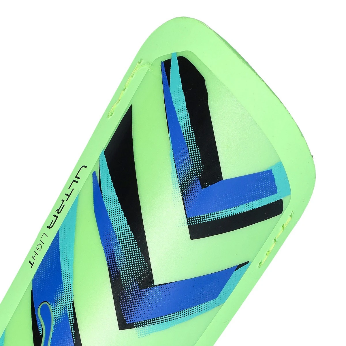 Protège-tibia Puma Ultra Light Strap. Design vert avec des détails bleus et noirs. Les bandes velcro réglables permettent un ajustement parfait et une grande adaptabilité. Plaque de protection légère et très résistante aux chocs. La doublure intérieure en mousse EVA gaufrée absorbe l'énergie de l'impact et réduit le poids du protège-tibia. La forme asymétrique assure un bon ajustement et une bonne respirabilité pour chaque jambe.