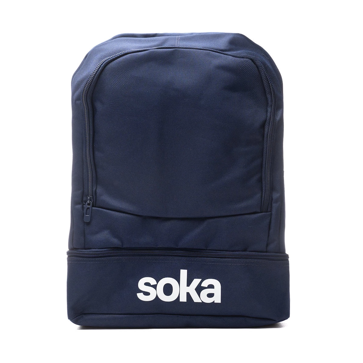 Sac à dos Soka Soul en bleu marine. Un article parfait pour transporter tout ce dont vous avez besoin pour vos séances d'entraînement ou vos matchs. Imprimé avec le nom de la marque sur le fond.