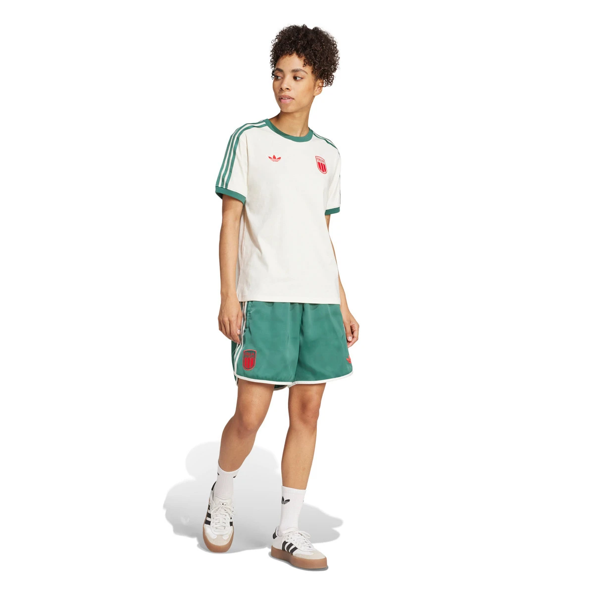 Que ce soit pour soutenir l’équipe nationale féminine d’Italie dans sa quête de victoire ou simplement pour afficher tes couleurs footballistiques, ce short adidas t’offre une combinaison gagnante de confort et de style. Confectionné dans un tissu satiné doux, il arbore des tons verts qui complètent la deuxième tenue de la sélection italienne. Le blason de l’équipe et le logo Trèfle adidas complètent son look audacieux.