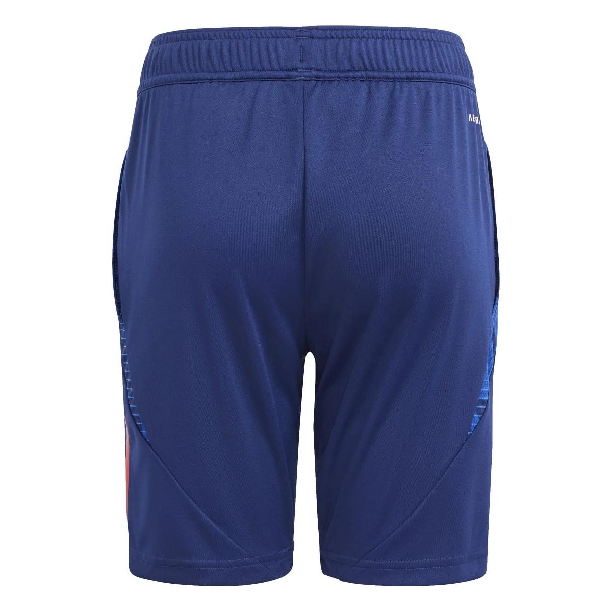 Short d'entraînement Italie pour enfants Euro 2024. Ce short d'entraînement de football unisexe pour les jeunes est doté de la technologie de gestion de l'humidité AEROREADY pour vous garder au sec lorsque l'action s'intensifie. Sur le terrain ou en dehors, ce short allie un look sportif à des performances supérieures.