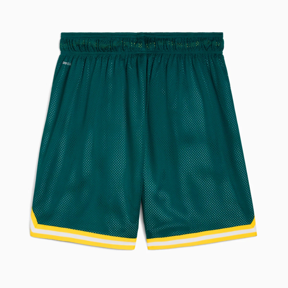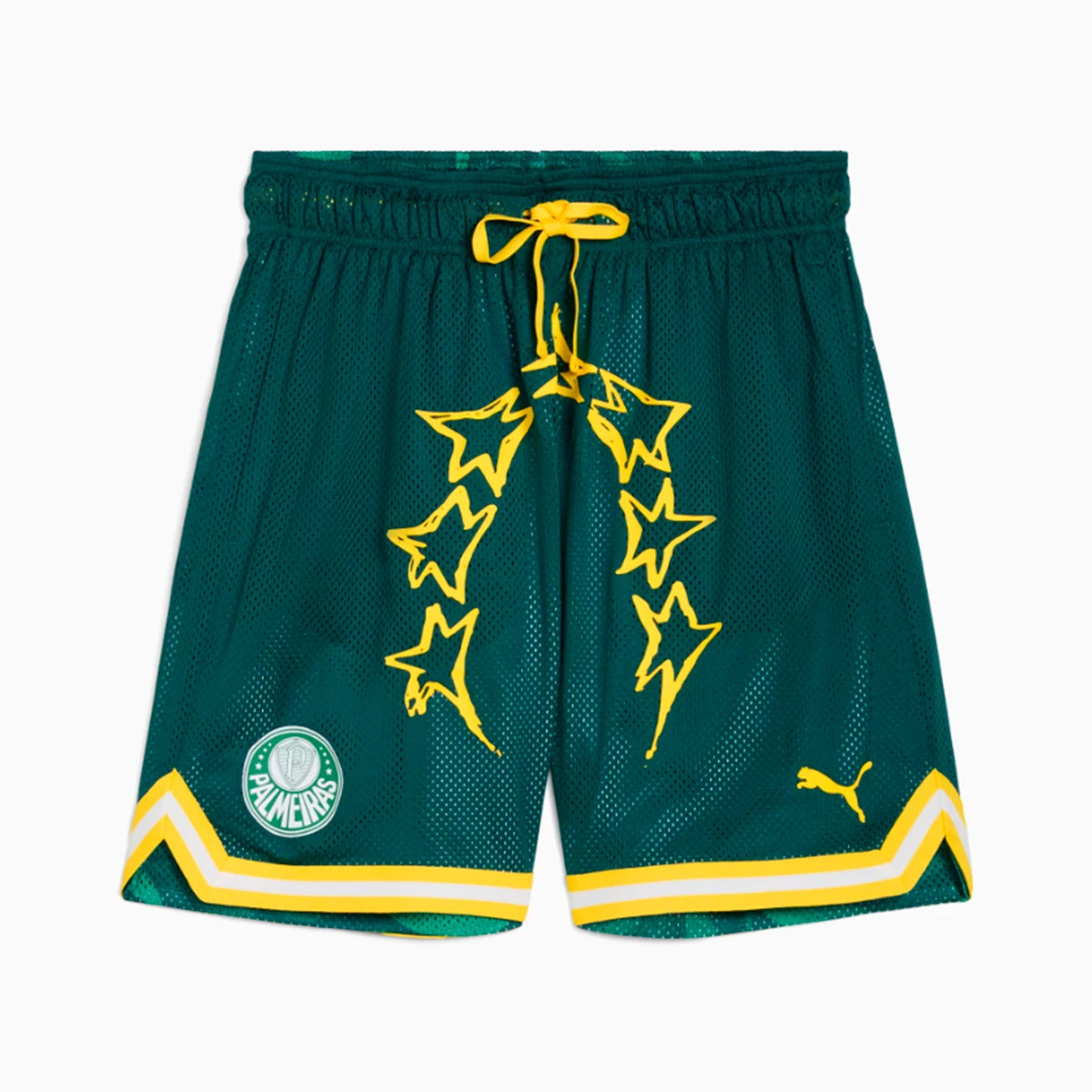 Ce short issu de la collaboration exclusive entre PUMA Hoops et Palmeiras associe l'essence du basket-ball à la fierté d'appartenir à une équipe. Fabriqué en maille et conçu pour la polyvalence avec un style réversible et une taille ajustable à cordon de serrage, il est souligné par les emblèmes distinctifs des deux marques. Parfait pour jouer ou se retrouver entre amis, c'est le choix idéal pour montrer votre passion pour le sport avec attitude.