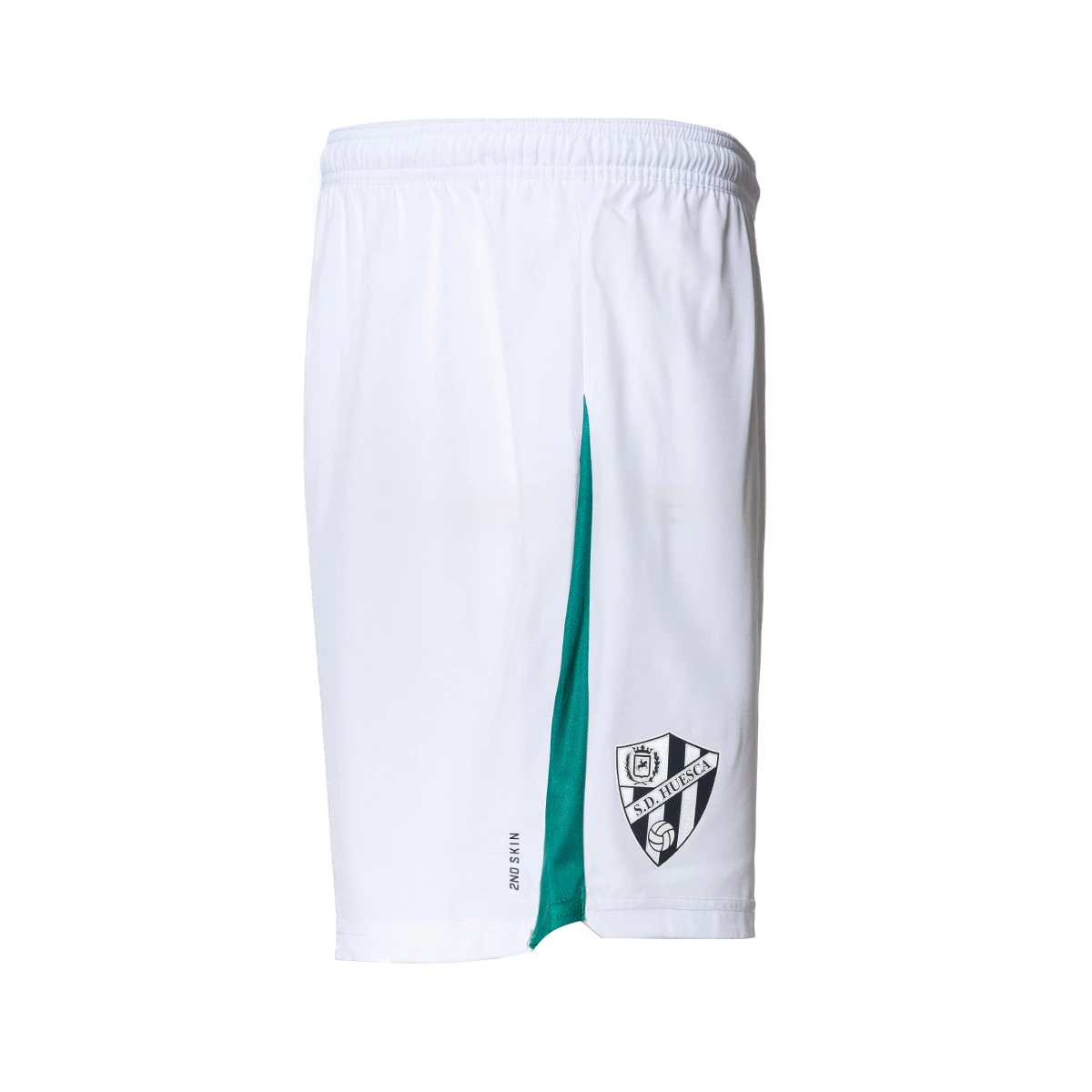 Short du maillot extérieur du SD Huesca pour la saison 2025-2025 de la marque Soka en Ice White-SDH Green pour enfants. Habillez-vous comme l'équipe de Huesca lorsqu'elle joue loin de l'Alcoraz et ressentez la fierté et les valeurs de l'équipe. Un vêtement idéal pour vos matchs qui vous apportera un grand confort pendant les quatre-vingt-dix minutes.