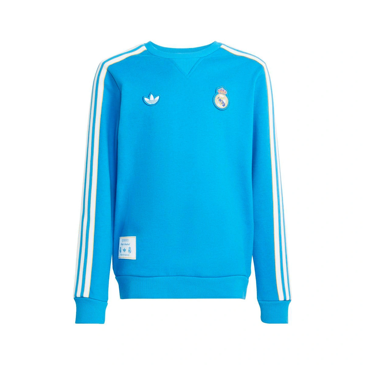 Avec un design classique et un tissu en molleton doux et légèrement extensible, ce sweat est conçu pour accompagner les jeunes madridistas au quotidien avec un confort total. L’écusson brodé du Real Madrid et le logo adidas Trefoil viennent orner la poitrine, apportant une touche vintage pleine d’histoire.