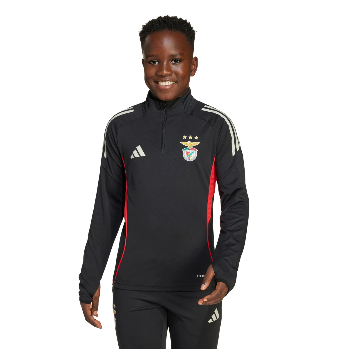 Ce sweat-shirt d'entraînement Benfica en couleur noir pour enfant de la collection 2025-2026 combine le meilleur du style et de la fonctionnalité, reflétant le design professionnel porté par les joueurs de l'équipe. Fabriqué par adidas, il est conçu pour les petits fans qui veulent afficher leur fierté S.L. Benfica en dehors du stade.