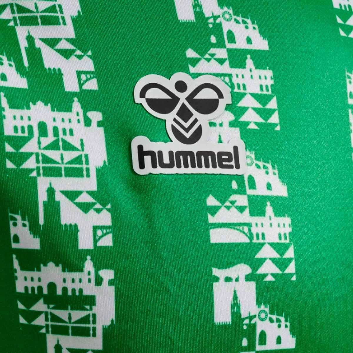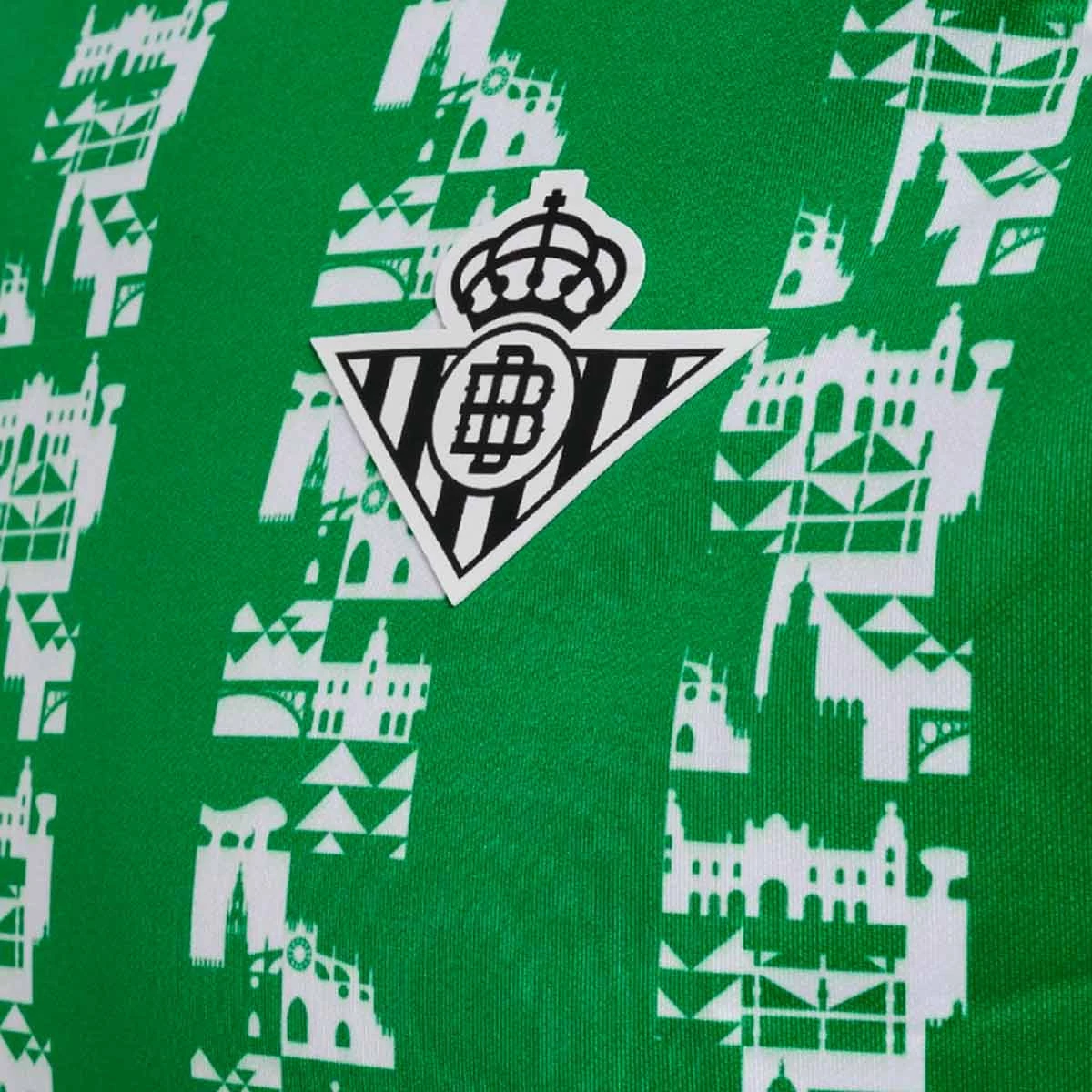 Le nouveau sweat-shirt d'avant-match du Real Betis 24-25 est conçu en hommage à la ville de Séville. Il a un design innovant, dans lequel les couleurs traditionnelles du club sont reflétées, ainsi que des rayures où l'on peut voir les icônes et les paysages les plus représentatifs de Séville.