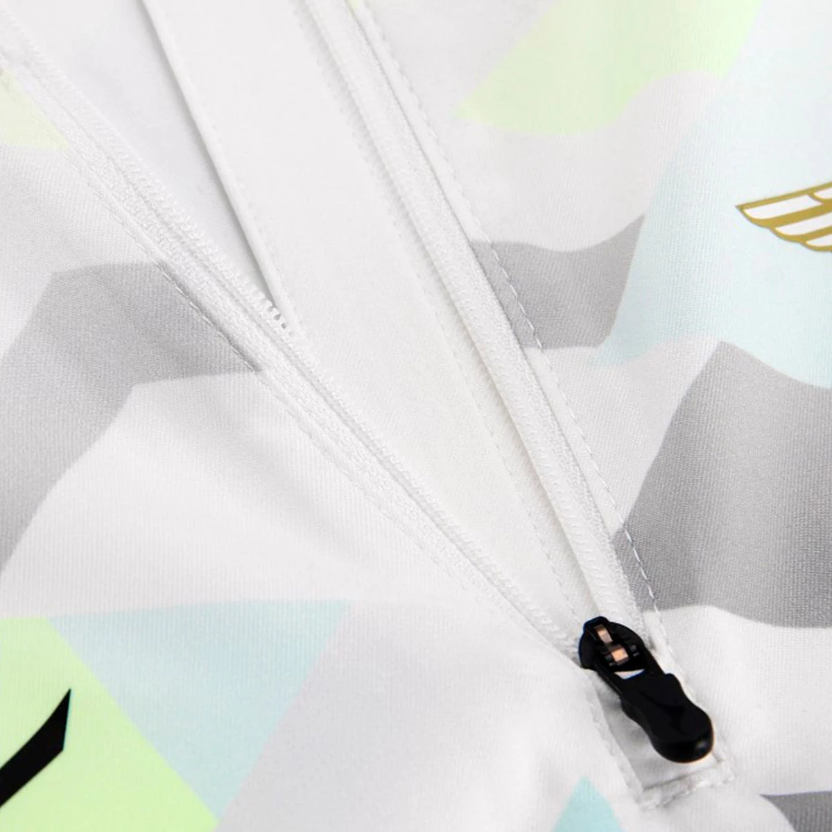 Sweat-shirt Lazio Pre-Match pour la saison 2024-2025. Ce sweat-shirt léger à fermeture éclair est la couche idéale pour les journées d'entraînement plus chaudes ou pour arborer fièrement l'écusson si important du club, tout en présentant un graphique avant spécialement conçu pour la saison.