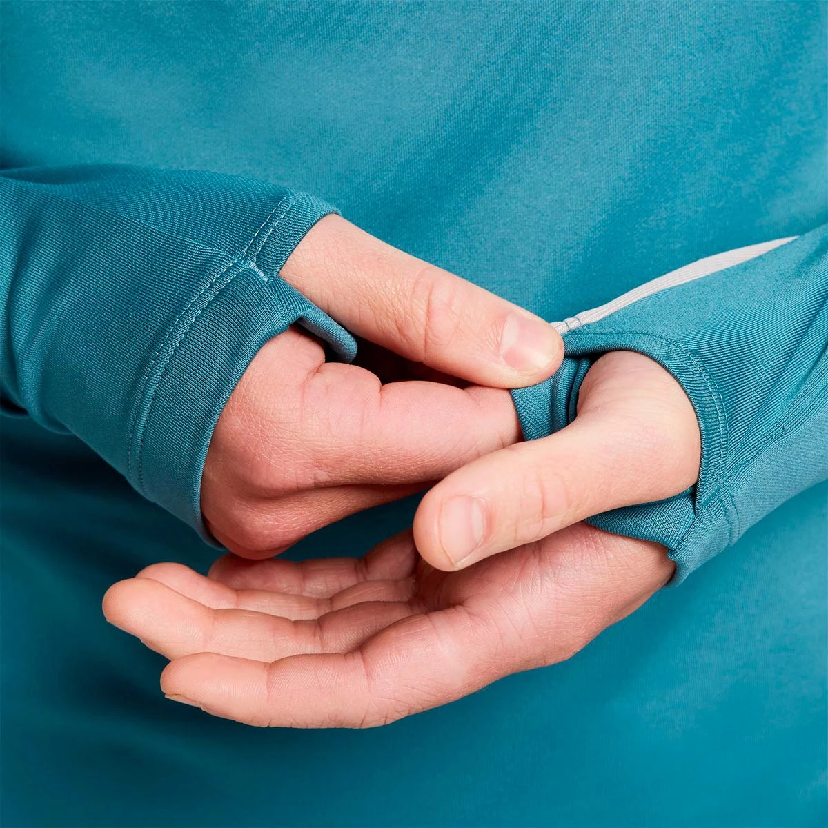 • Les trous pour les pouces vous permettent d'étendre la couverture et de maintenir les manches en place lorsque vous bougez.
