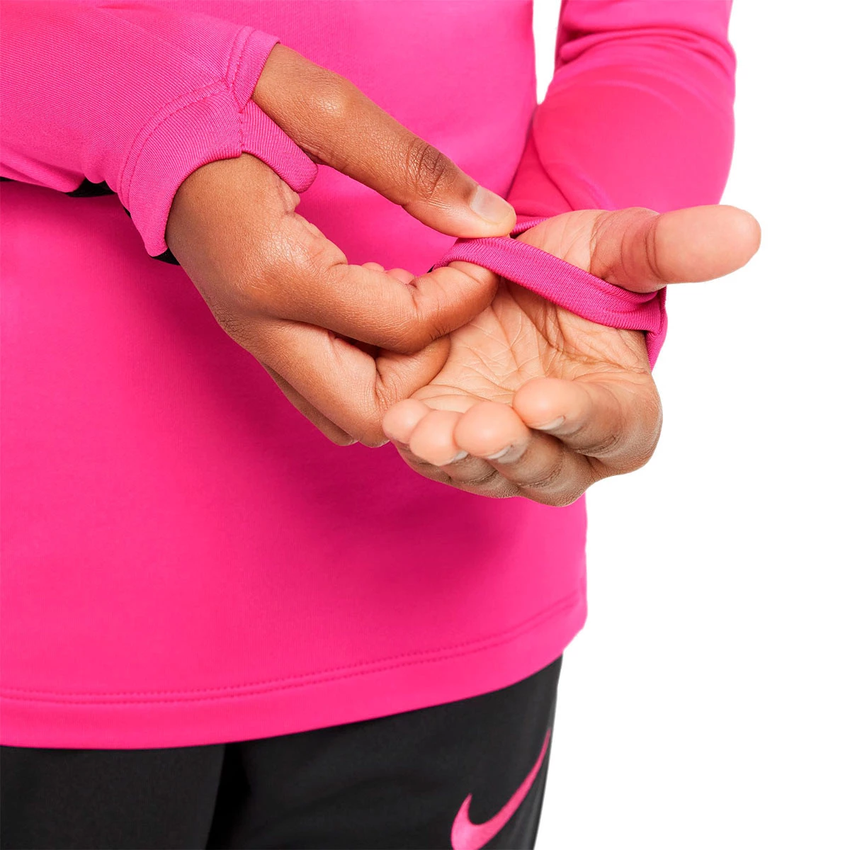 Avec des détails de conception spécialement conçus pour les étoiles montantes du football, une coupe fine et ajustée garantit que rien ne se trouve entre vous et le ballon. La technologie d'évacuation de la transpiration vous aide à rester au frais et concentré pendant que vous perfectionnez vos compétences. Réplique de ce que portent les pros, le tissu tricoté extensible vous permet de bouger librement.