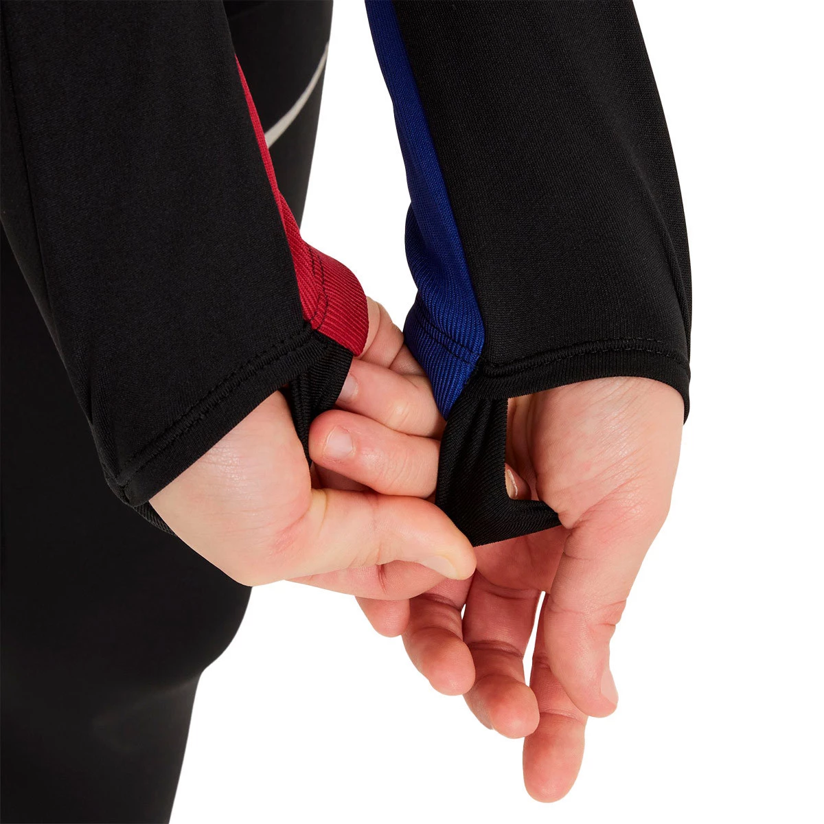 • Les trous pour les pouces offrent une protection supplémentaire et maintiennent les manches en place lorsque vous bougez.
