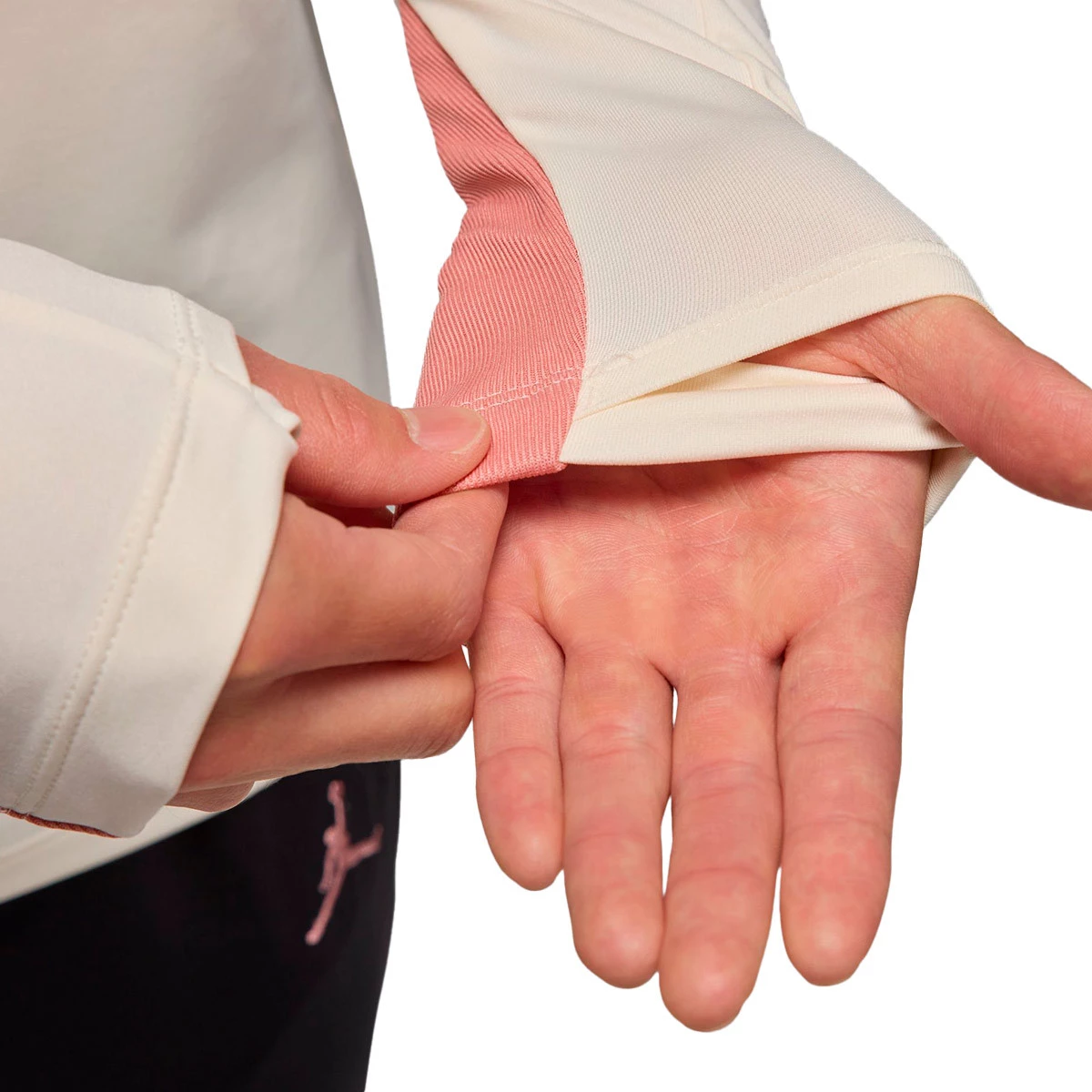 • Les trous pour les pouces offrent une protection supplémentaire et maintiennent les manches en place lorsque vous bougez.
