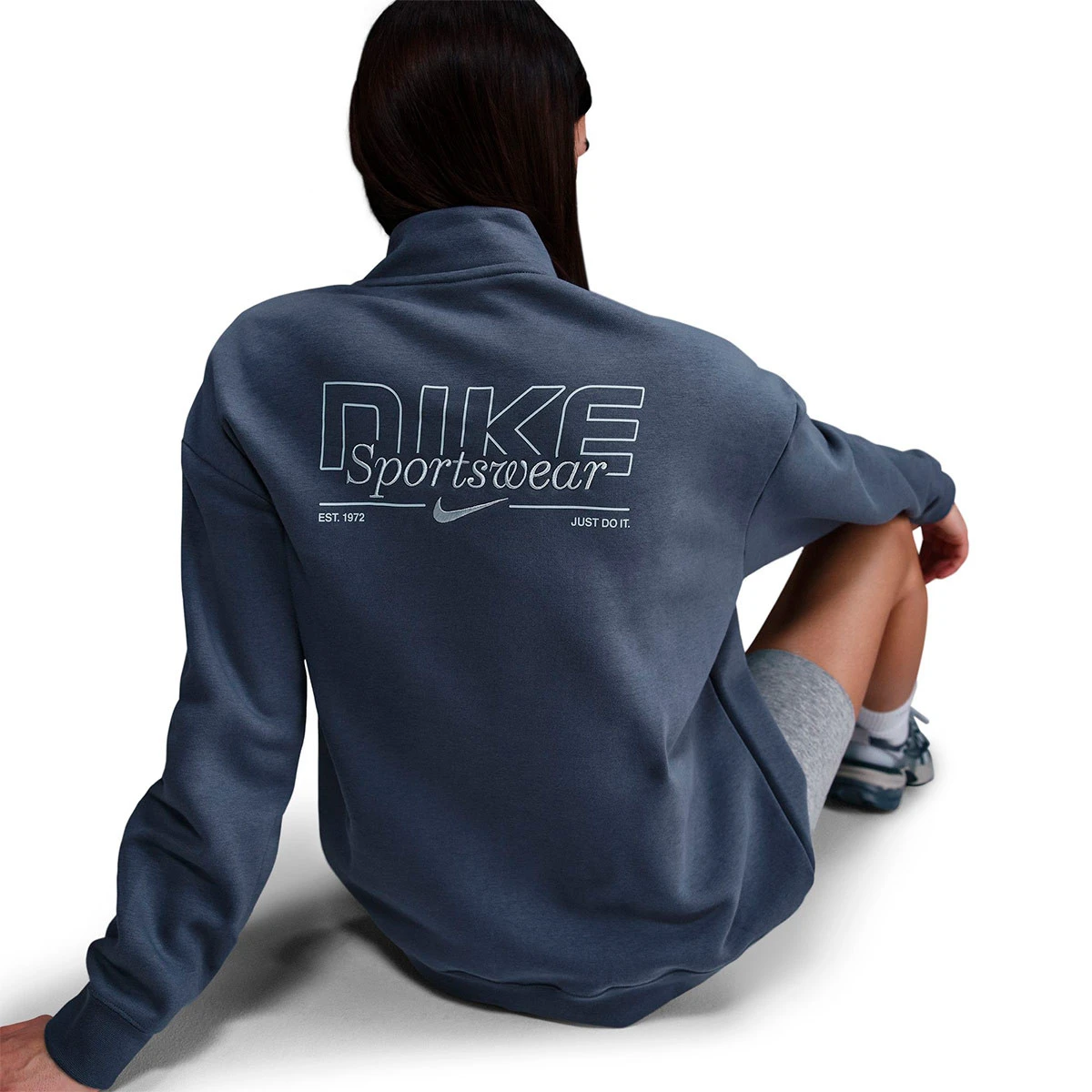 Sweat-shirt en molleton Sportswear pour femmes. Avec une coupe surdimensionnée et une fermeture à glissière 1/4, ce tissu polaire doux actualise un classique pour un look innovant prêt à être porté tous les jours. Le tissu polaire brossé de densité moyenne offre une sensation super douce à l'intérieur et une sensation lisse à l'extérieur pour maintenir le confort et une forme structurée.