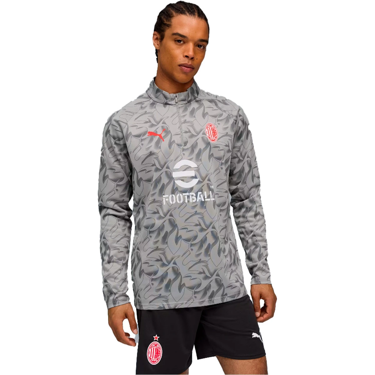 Imaginez-vous dans la peau d'un joueur de l'A.C. Milan avec ce sweat-shirt Smokey Gray-White Ac Milan Pre-Match 2025-2026 de Puma.