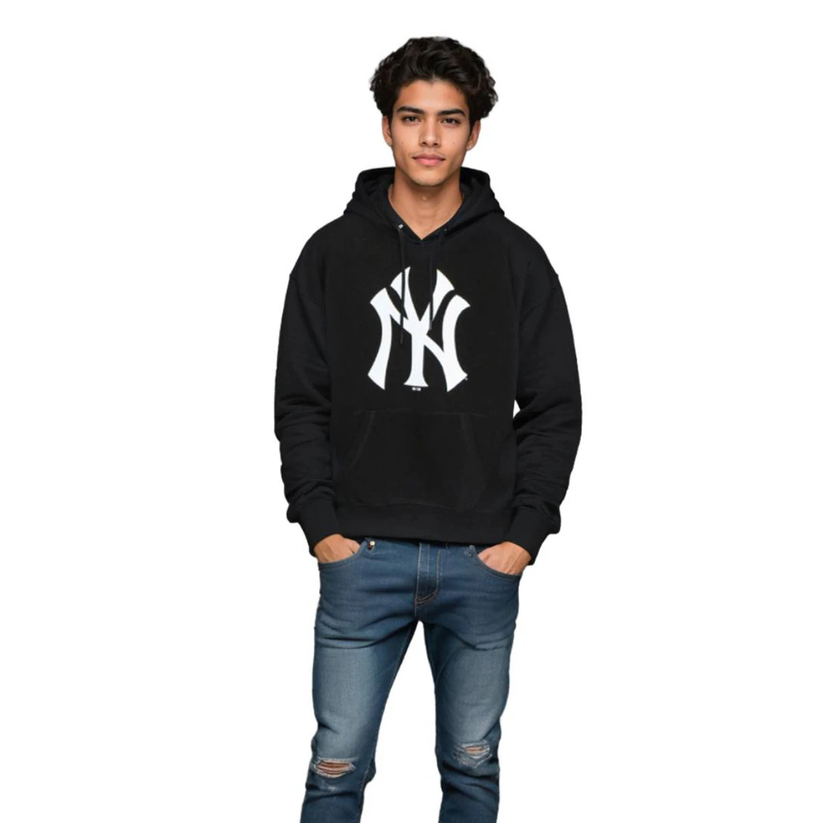 MLB New York Yankees Imprint sweatshirt à manches longues avec capuche à cordon de serrage et poche kangourou sur le devant, poignets et ourlet côtelés. Le vêtement présente une coupe régulière et le logo des New York Yankees sur le devant. Lavage en machine.