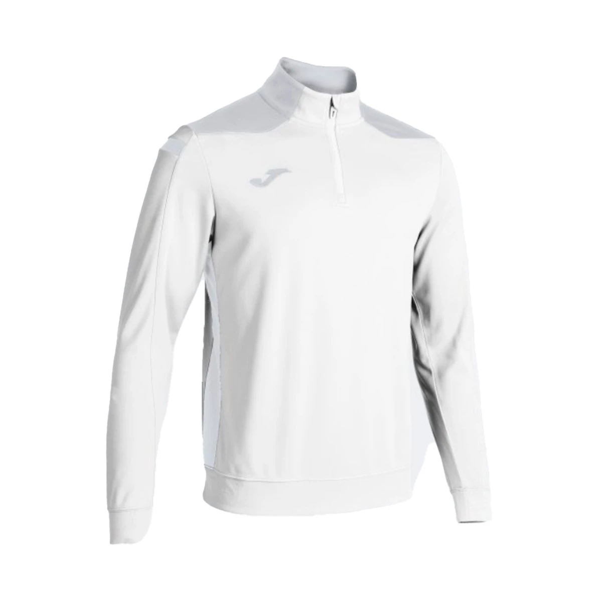 Enfants Sweat-shirt Joma Championship VI en blanc-gris. Les poignets et le bas du produit sont faits de bande élastique. Modèle avec inserts en contraste. Logo de la marque brodé.