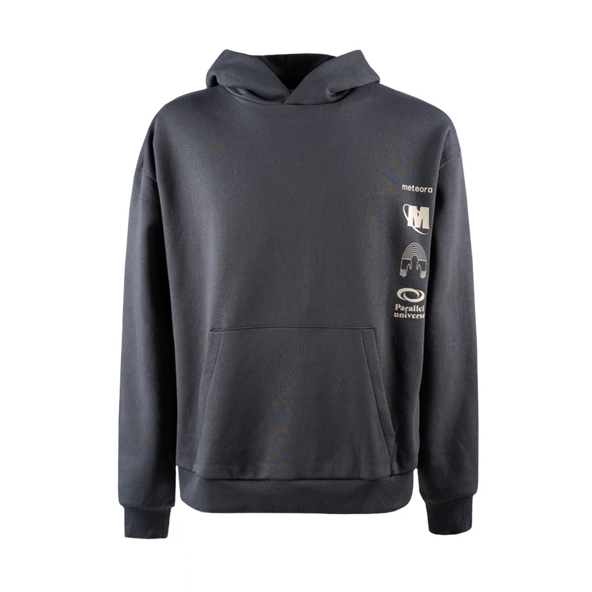 Sweat-shirt oversize avec capuche et manches longues. Poche kangourou sur le devant. Impression sur le devant. 100% coton 240 gr avec intérieur matelassé. Finition côtelée.