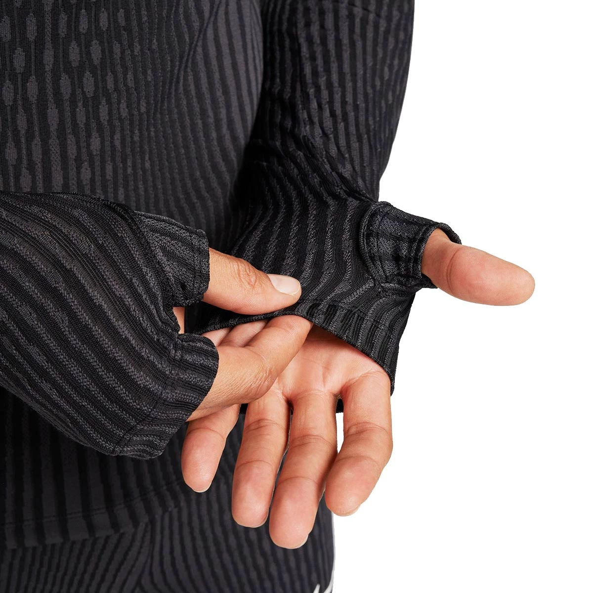 • Les trous pour les pouces offrent une protection supplémentaire et maintiennent les manches en place lorsque vous bougez.