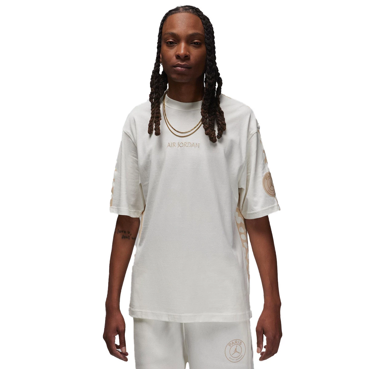 Minimaliste sur le devant, maximaliste sur le dos. Ce T-shirt en coton lourd présente une marque subtile sur la poitrine et la manche représentant la marque Jordan et le PSG. Tournez-vous pour montrer l’imprimé éléphant sur le dos, un écho de l’emblématique AJ3.
