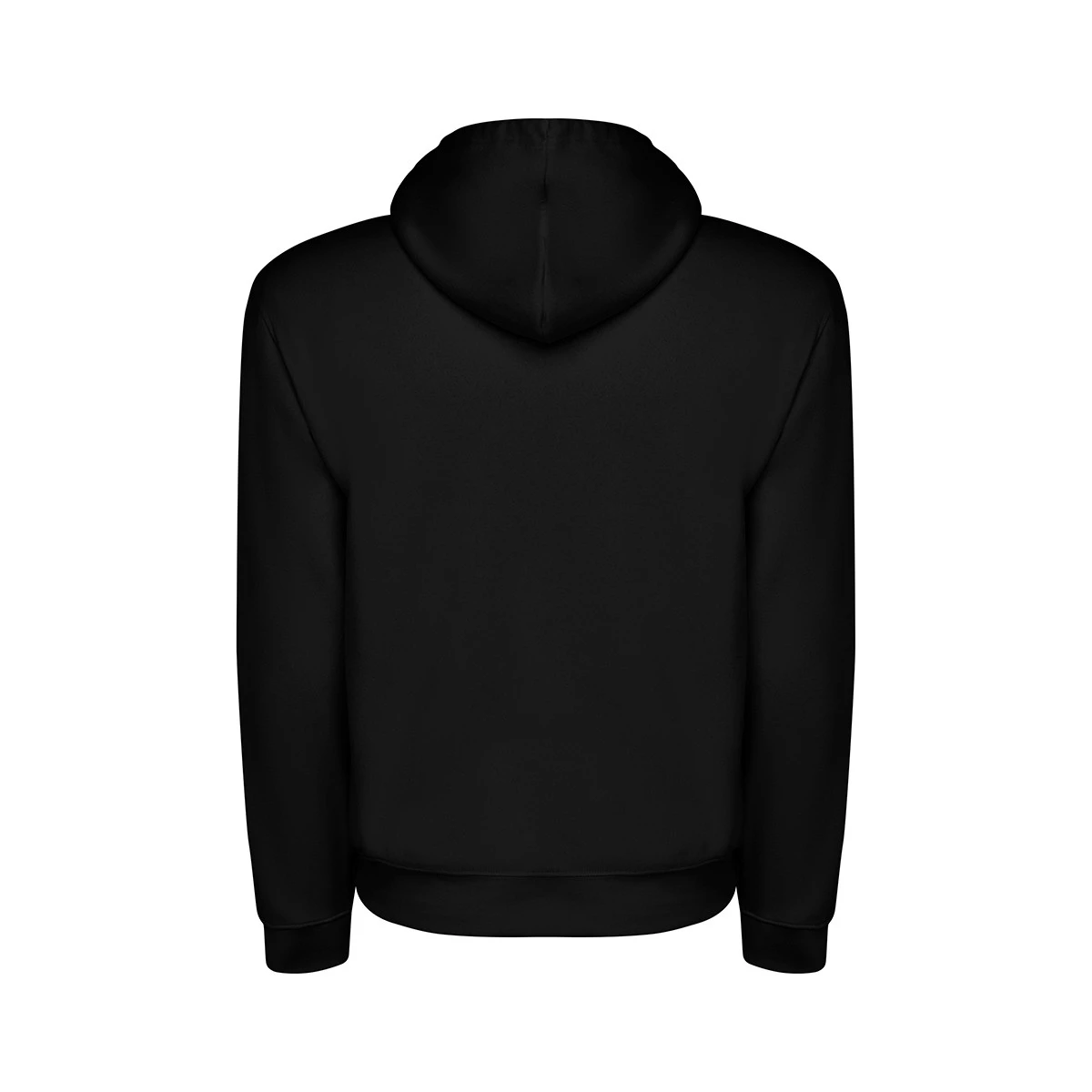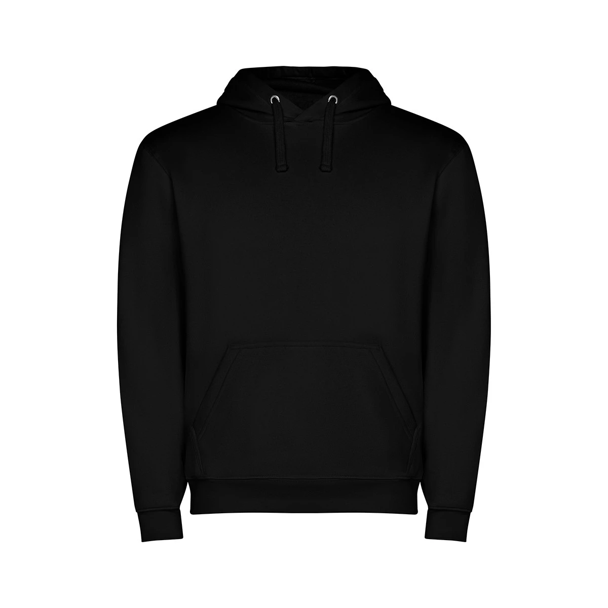 Sweat à capuche et poche kangourou sur le devant. Poignets et ceinture en maille côtelée 1x1 avec spandex.