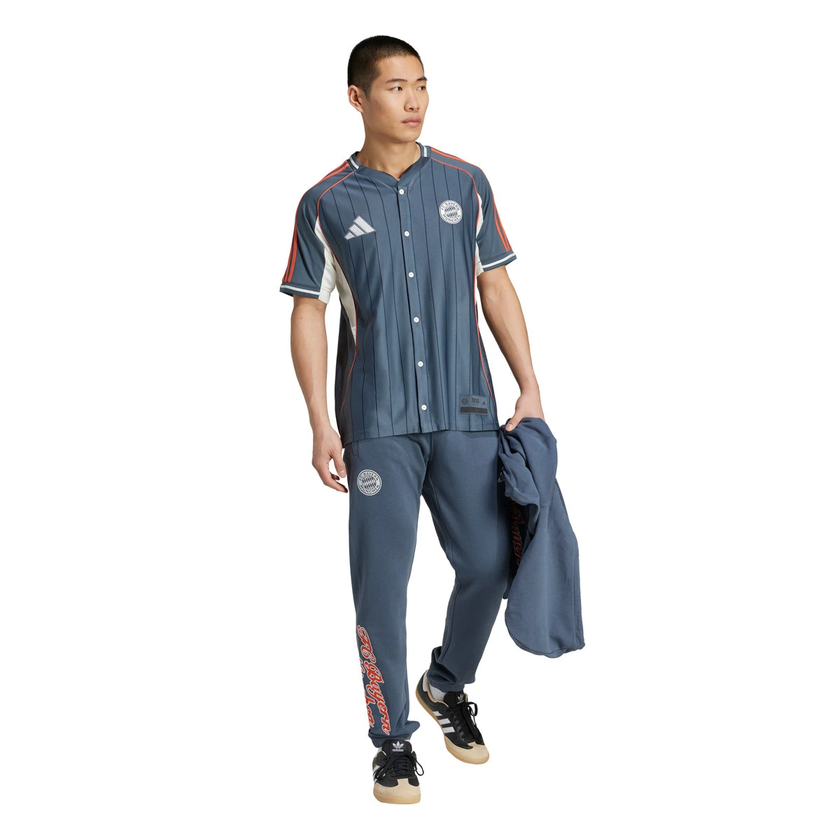 Célébrant deux cultures sportives, ce T-shirt adidas FC Bayern réunit les mondes du football et du baseball.