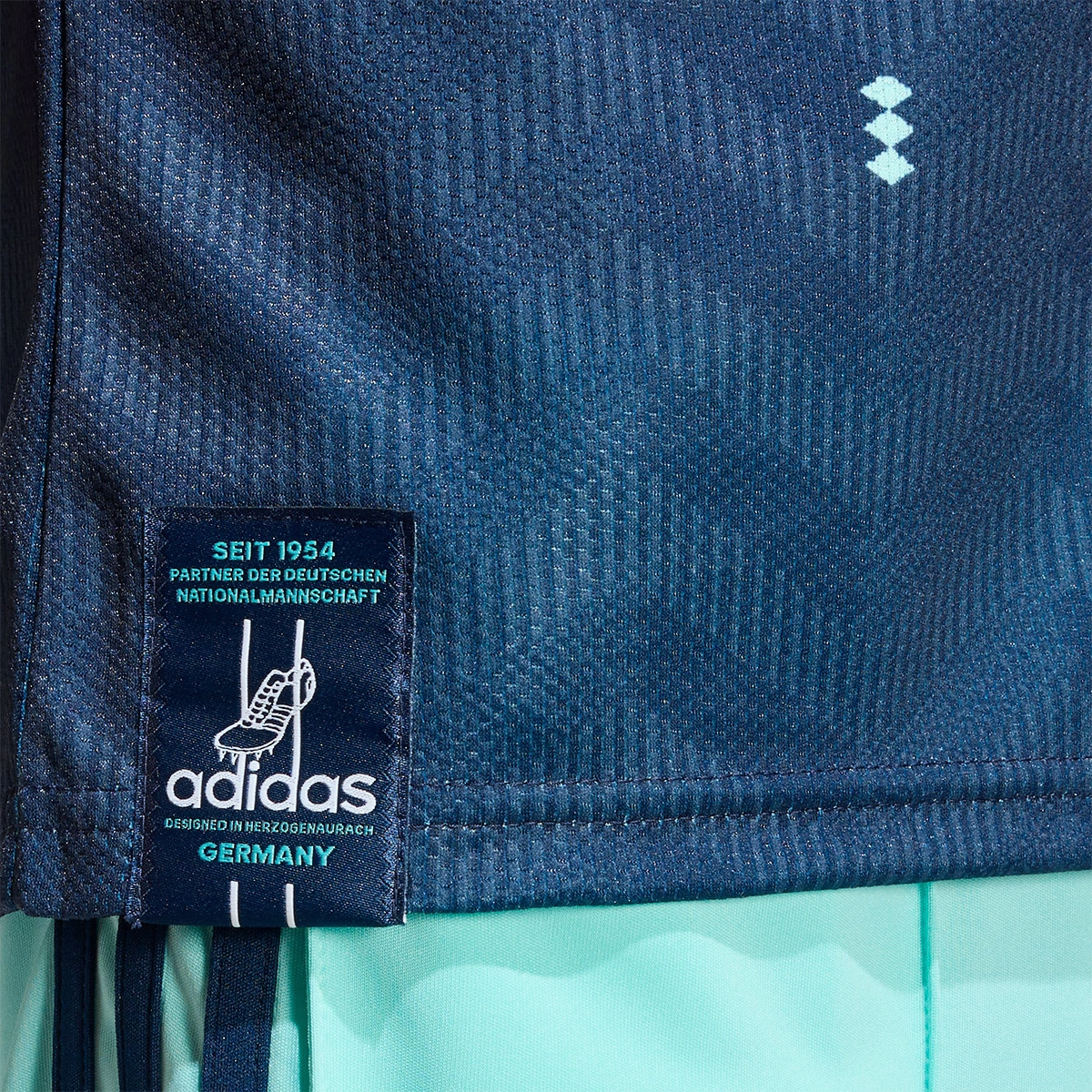 Il intègre la technologie Climacool, qui absorbe et disperse la transpiration pour une performance fraîche, sèche et sans distractions, et il est confectionné en tissu double maille à séchage rapide. Avec l'écusson de la fédération allemande de football et une étiquette du drapeau, le design est complété par le logo iconique d'adidas.