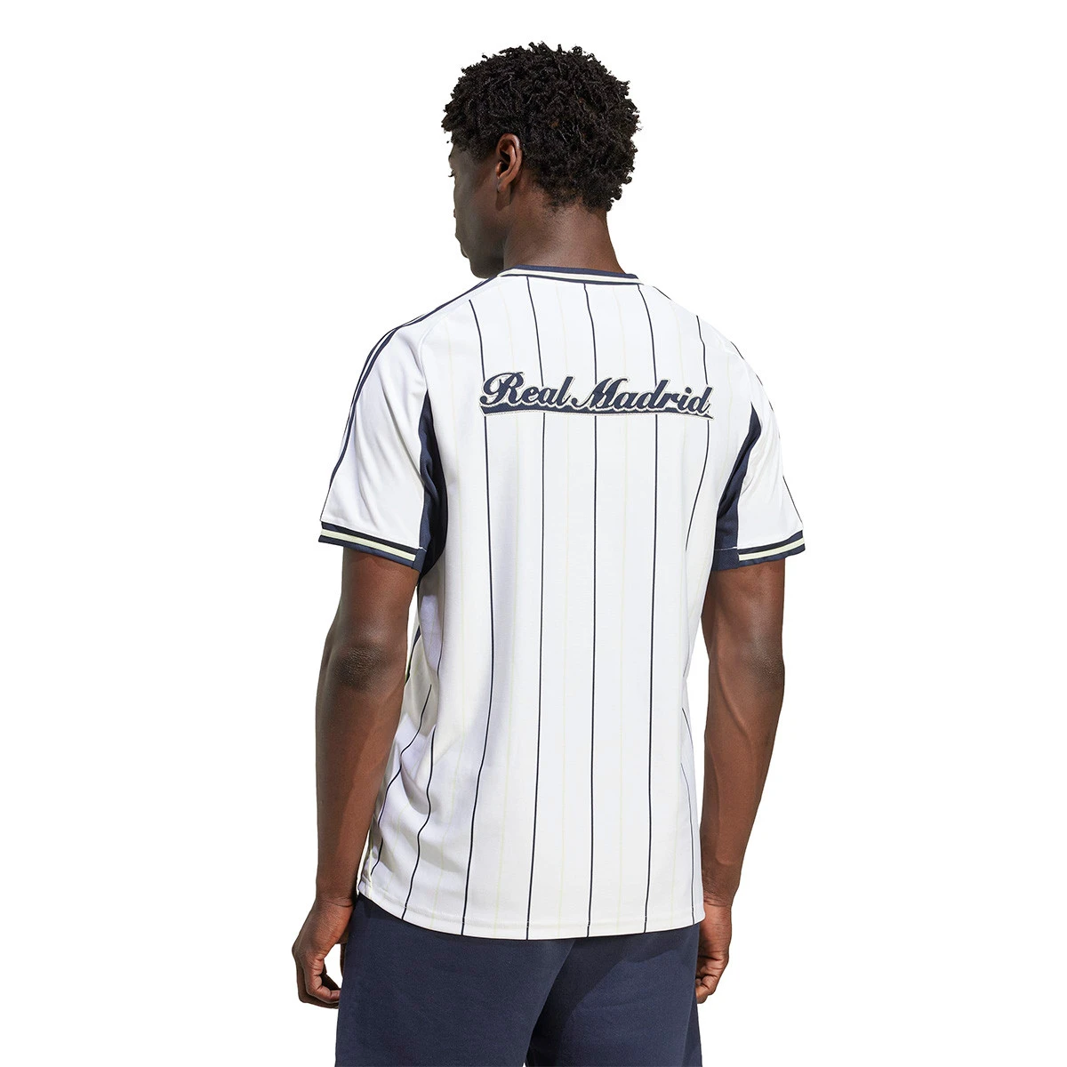 Deux mondes sportifs se rencontrent dans ce T-shirt du Real Madrid, conçu par la prestigieuse marque adidas.