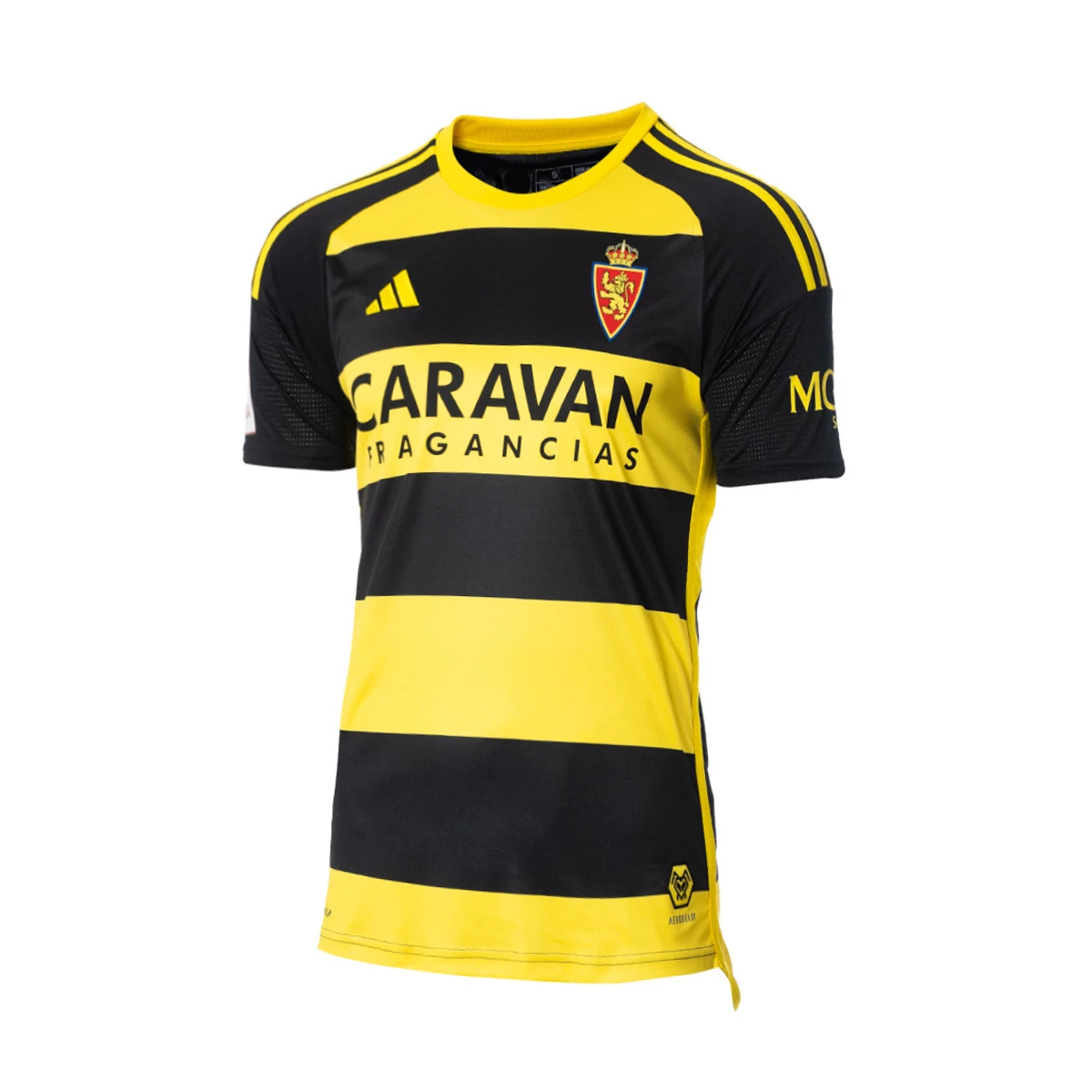Ce maillot extérieur comporte des détails différents : une phrase très saragossienne : "Moverse, maños, moverse" (Allez, maños, allez) et un badge hexagonal, avec l'icône de la guêpe à l'intérieur.