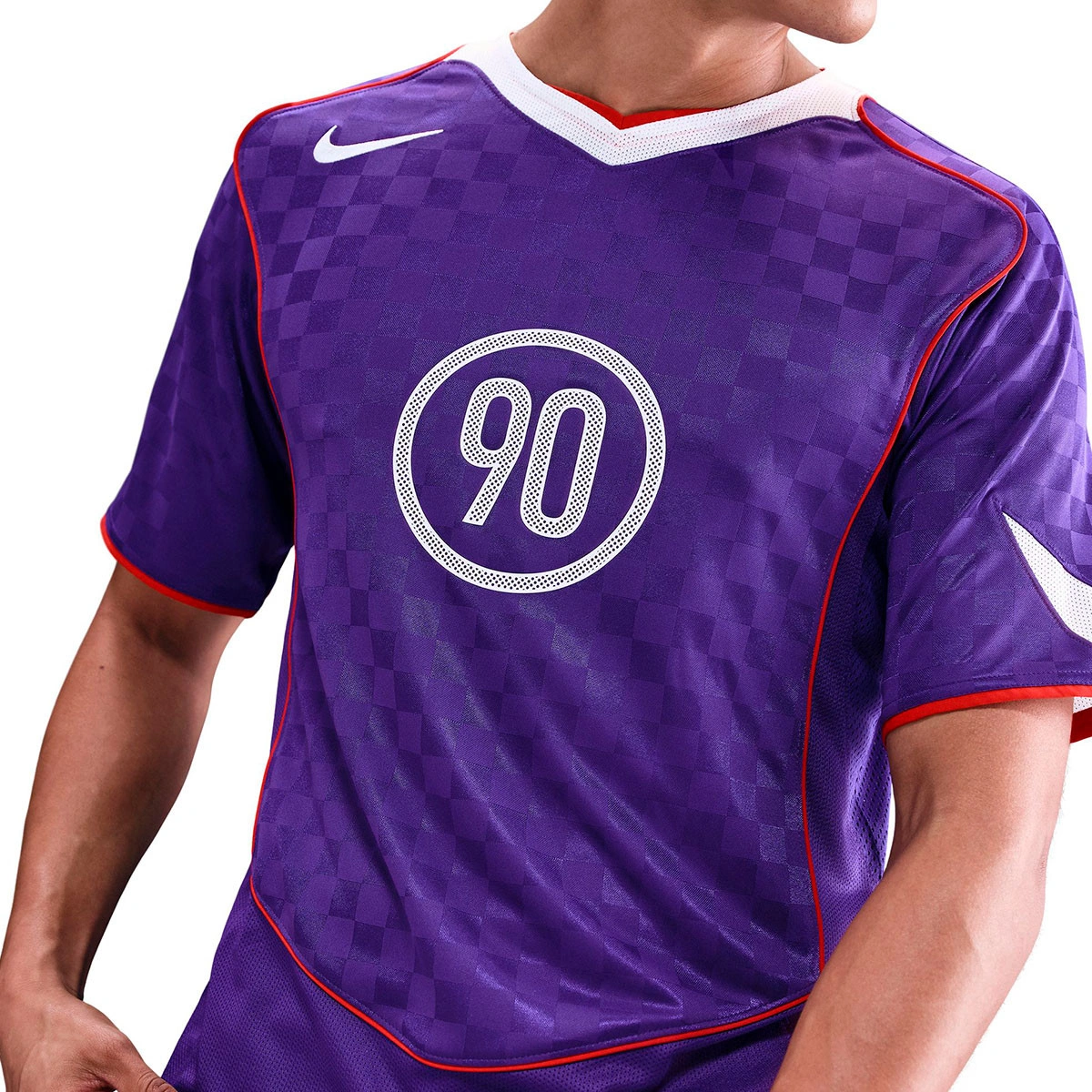 • La tenue Nike Total 90 (T90), lancée au milieu des années 2000, a été portée par diverses sélections et clubs Nike. Ses caractéristiques emblématiques incluent le logo Swoosh sur le côté droit de la poitrine, des détails en bordure et un design color block dans le dos.
