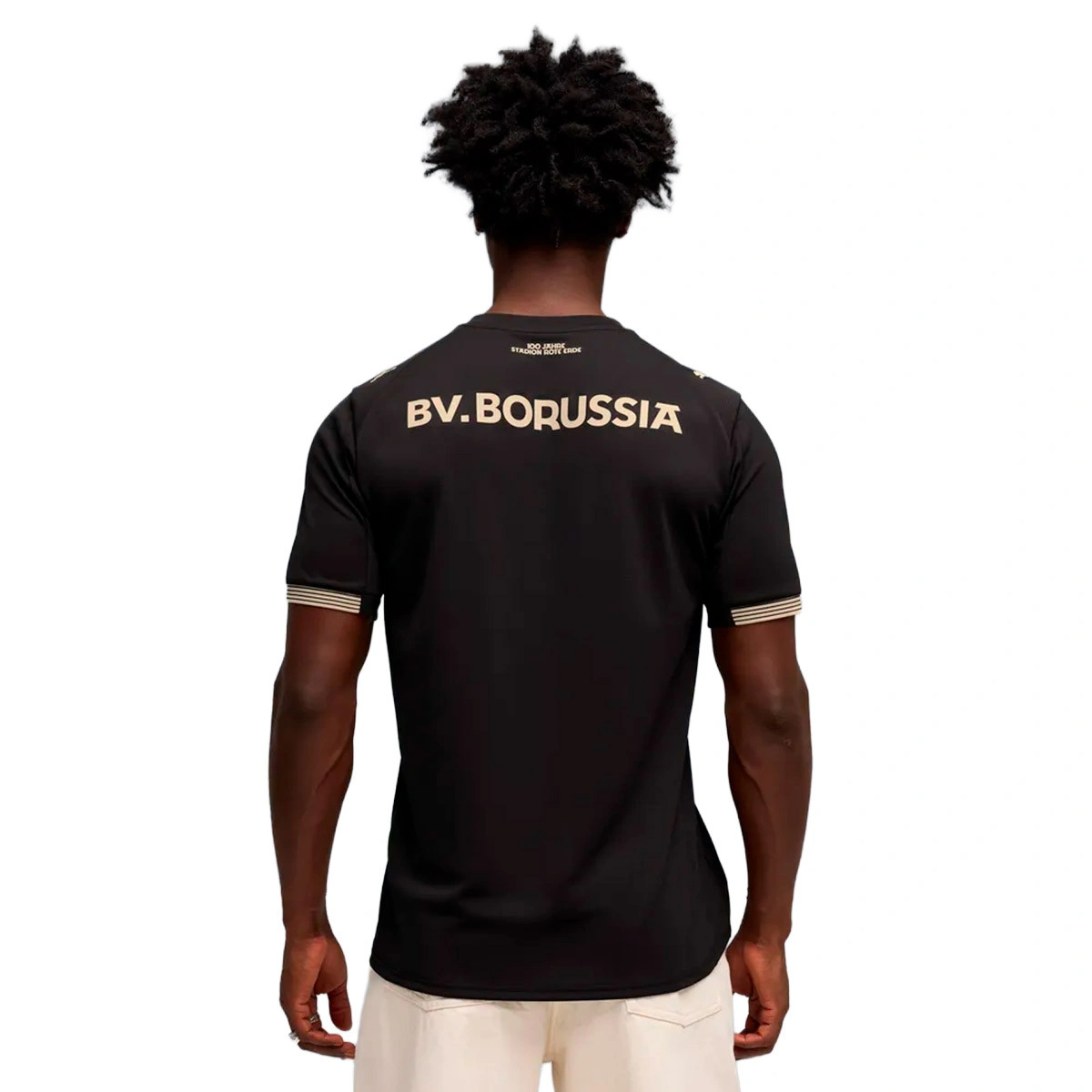L'écusson et la palette de couleurs s'inspirent des murs de grès qui encadrent le stade depuis 1926, apportant une touche authentique et vintage qui relie les nouvelles générations à l'essence du BVB. Au dos, l'inscription “100 Jahre Stadion Rote Erde” (“100 ans du stade Rote Erde”) clôture cet hommage unique au passé et au présent du Borussia Dortmund.