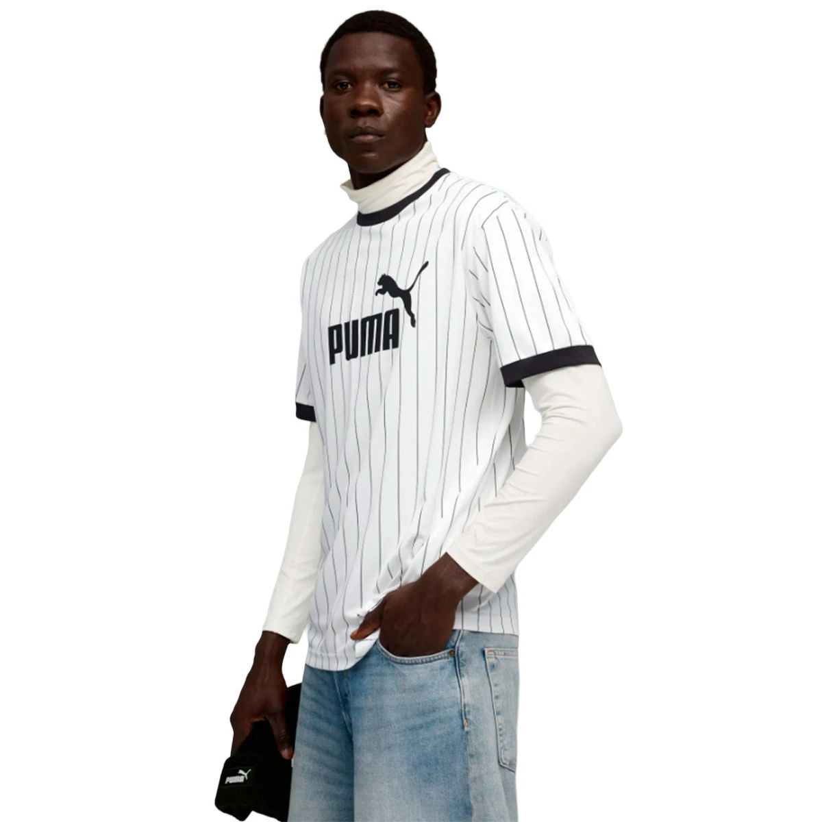 Ce maillot Puma Essentials Striped Jersey blanc est la parfaite fusion entre sport et mode. Avec un design contemporain souligné par ses fines rayures, il constitue une option polyvalente que vous pouvez porter aussi bien pour une séance d’entraînement que pour une sortie décontractée entre amis.