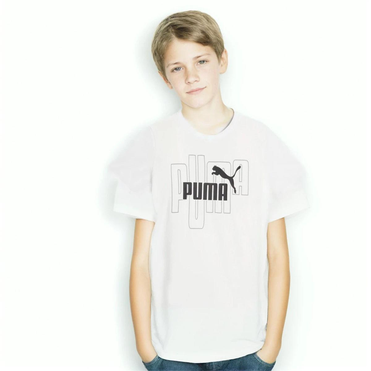 T-shirt graphique de la marque Puma pour garçon de couleur blanche.