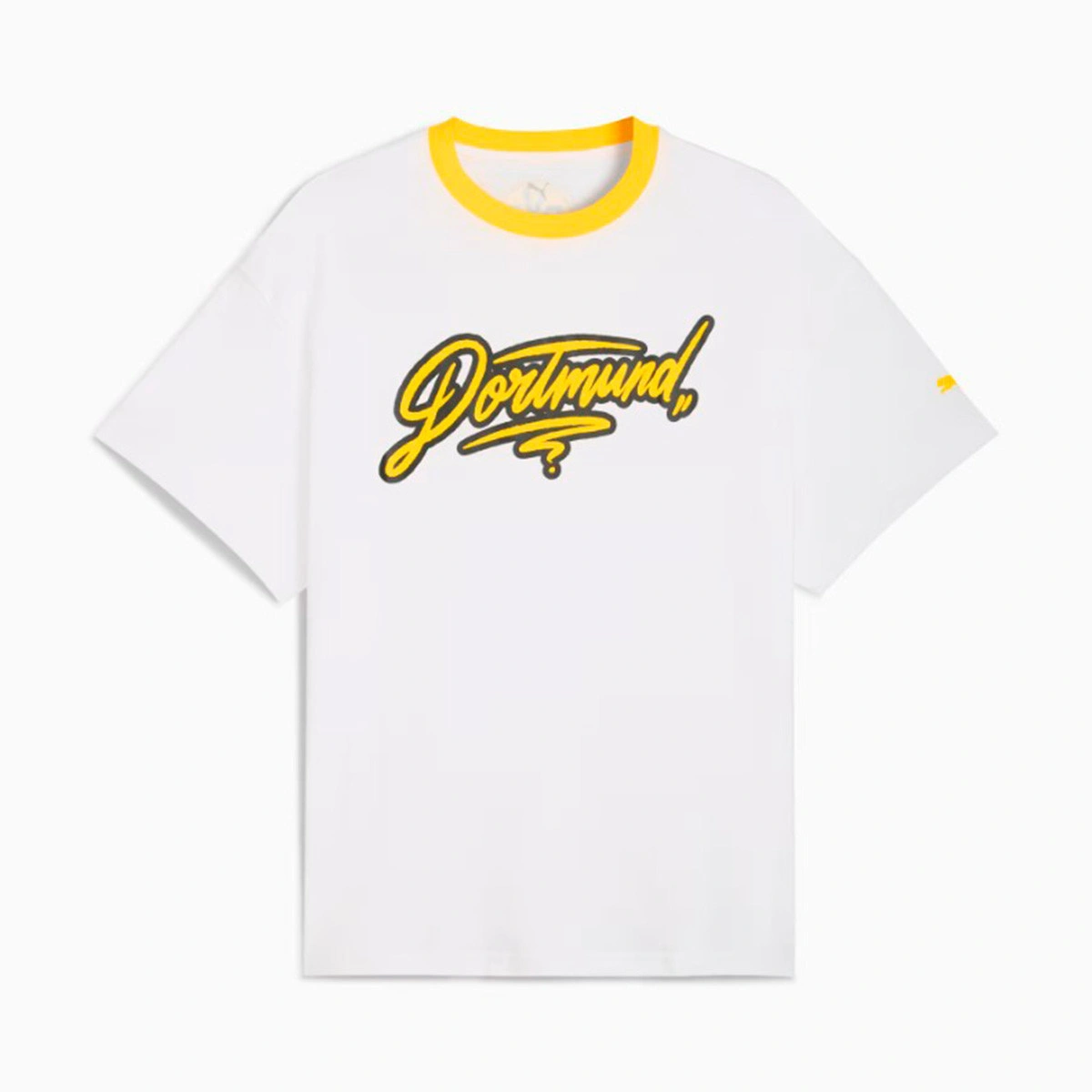 Il arbore une coupe standard et des manches courtes, agrémentées de détails de la marque Borussia Dortmund et de PUMA Hoops.