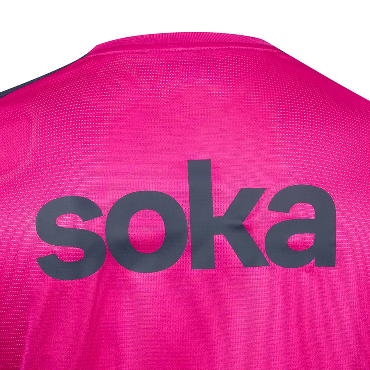Ce maillot d'entraînement pour enfants du SD Huesca, conçu par Soka, est tout ce qu'un jeune fan de football pourrait souhaiter. Inspiré de la tenue officielle des joueurs de l'équipe pendant la saison 2025-2026, ce modèle dans une couleur fuchsia vibrante est parfait pour être porté sur et en dehors du terrain.
