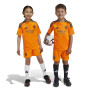 Kit extérieur du Real Madrid pour la saison 24/25. Montrez votre soutien à une nouvelle génération de footballeurs blancs. Ce kit adidas Real Madrid pour les jeunes fans comprend un maillot, un short et des chaussettes et arbore la couleur orange vif caractéristique de l'équipe. Le tissu AEROREADY respirant garde ta peau fraîche et sèche pendant que tu encourages tes héros. Les écussons thermo-transférés montrent que ta passion pour le club ne faiblit jamais.