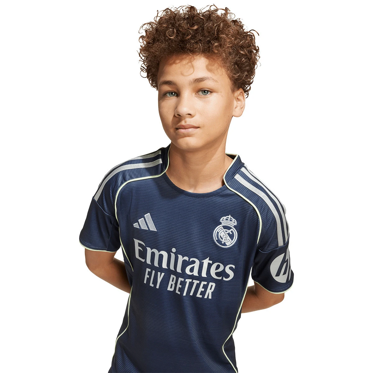 Le kit enfant du Real Madrid pour la saison 2025-2026 a été conçu par adidas en hommage à la grandeur et à l'élégance du club.
